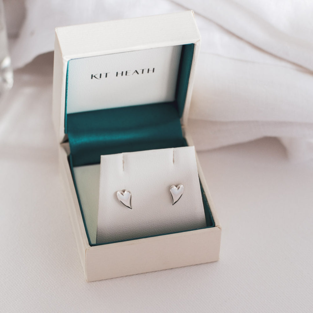 Delicate heart studs crafted in sterling silver, these Kit Heath earrings capture understated elegance with their miniature design. The Desire Kiss collection celebrates intimate moments through refined jewellery, making these versatile pieces perfect for everyday wear or layering. Polished to a lustrous finish, they offer timeless appeal that complements any occasion. An ideal choice for those seeking subtle sophistication in their accessory collection.