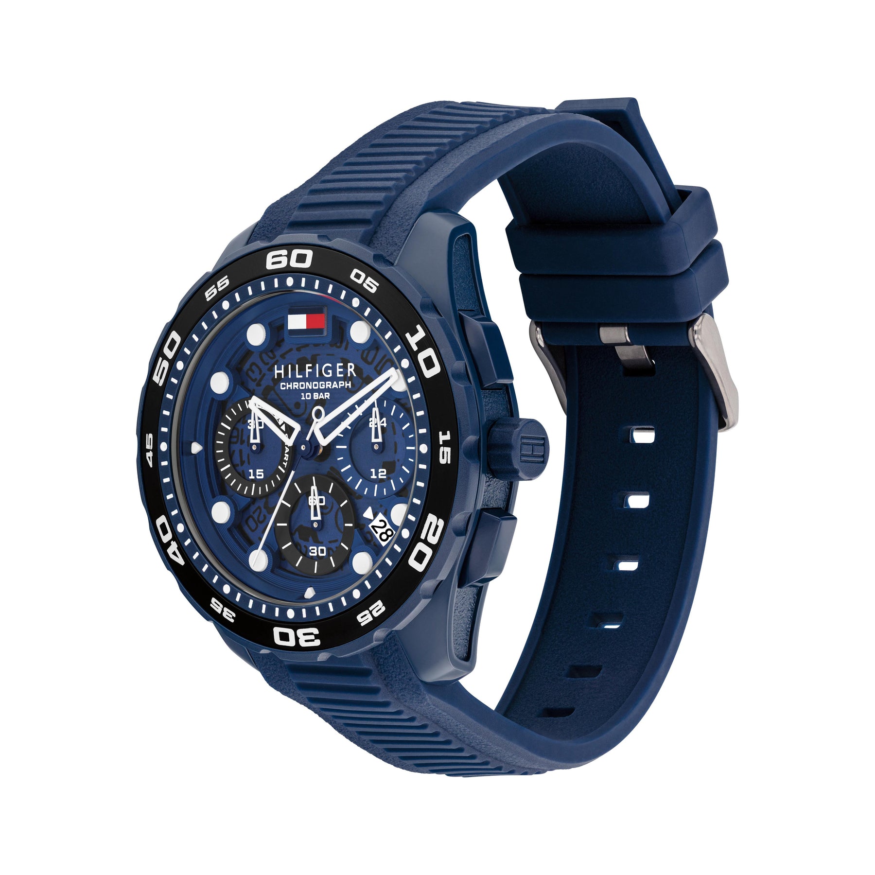 Elevate your style with the Tommy Hilfiger Blue Regatta Chronograph Watch. Its deep blue dial paired with a matching strap creates a cohesive, refined look. The chronograph features add functionality without compromising the watch’s sleek design. Perfect for those who value a blend of sophistication and practicality, this timepiece complements both formal and casual attire effortlessly.