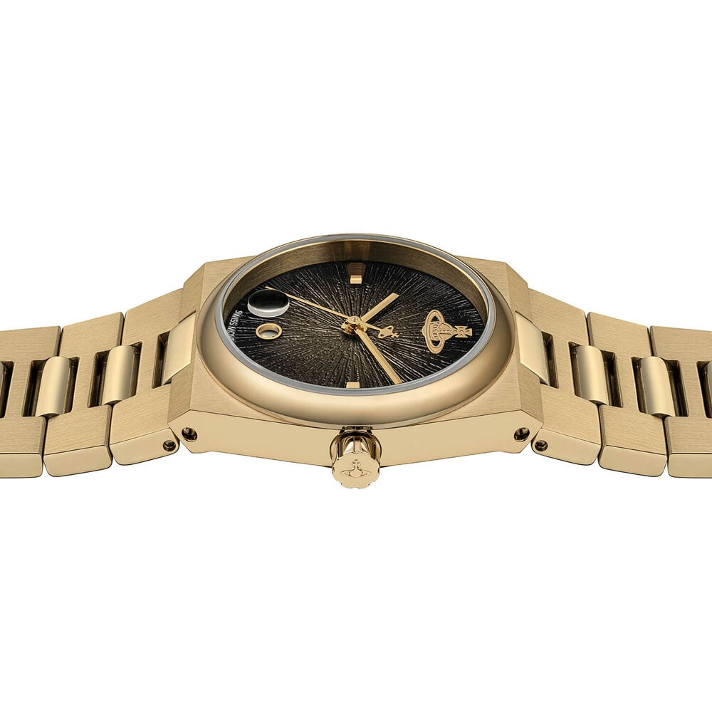 Elevate your wrist with this striking Vivienne Westwood timepiece, where British heritage meets contemporary elegance. The Hoxton features a sophisticated black dial set within a lustrous gold-plated case, delivering timeless appeal with a modern edge. The coordinating bracelet strap ensures a polished, cohesive look suitable for both everyday wear and special occasions. Precision-engineered for reliability, this watch embodies the rebellious spirit and refined craftsmanship Vivienne Westwood is renowned for. A statement piece that transcends trends.