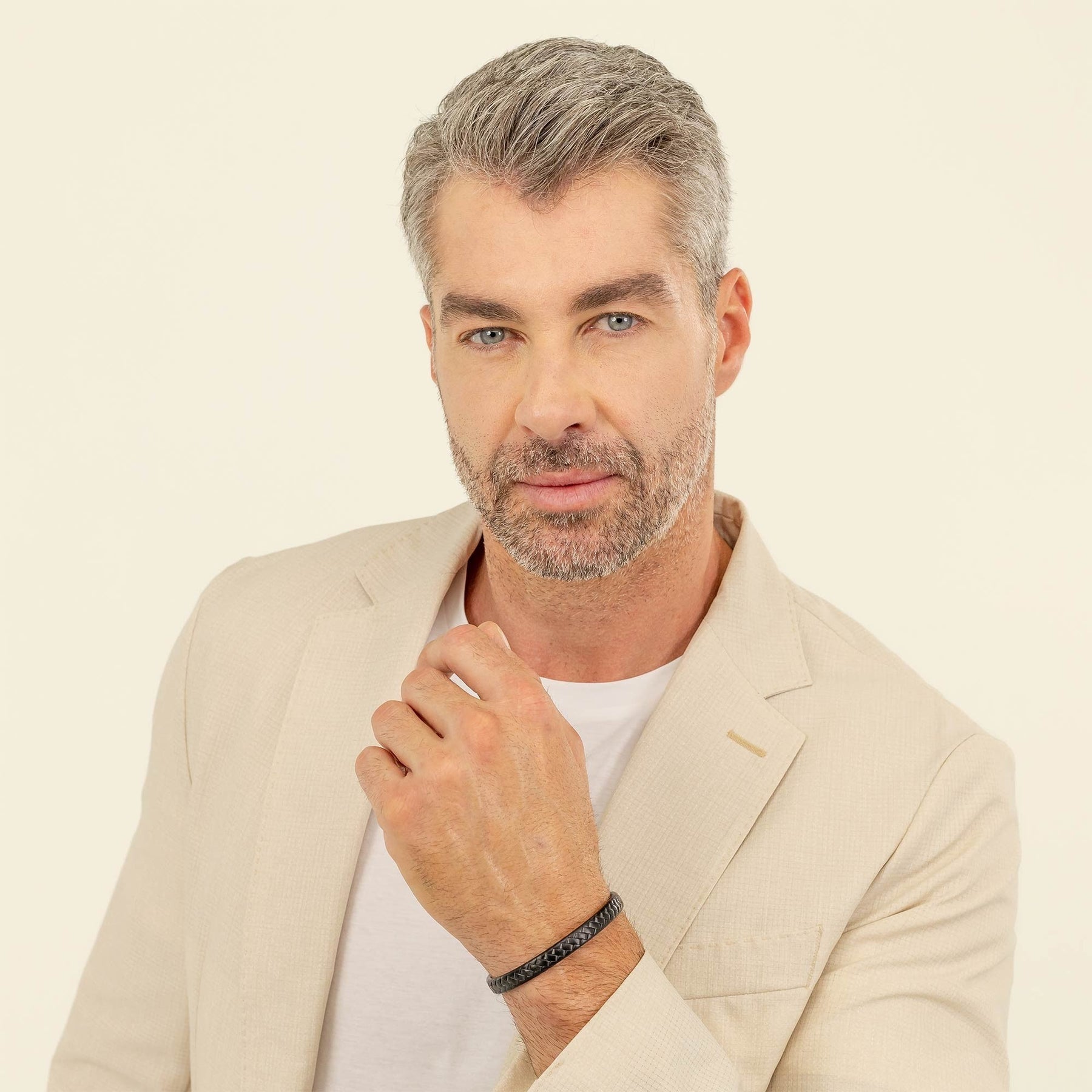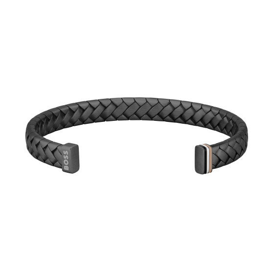 BOSS Mens Tailored Plaited Bangle in Black IP Stainless Steel *