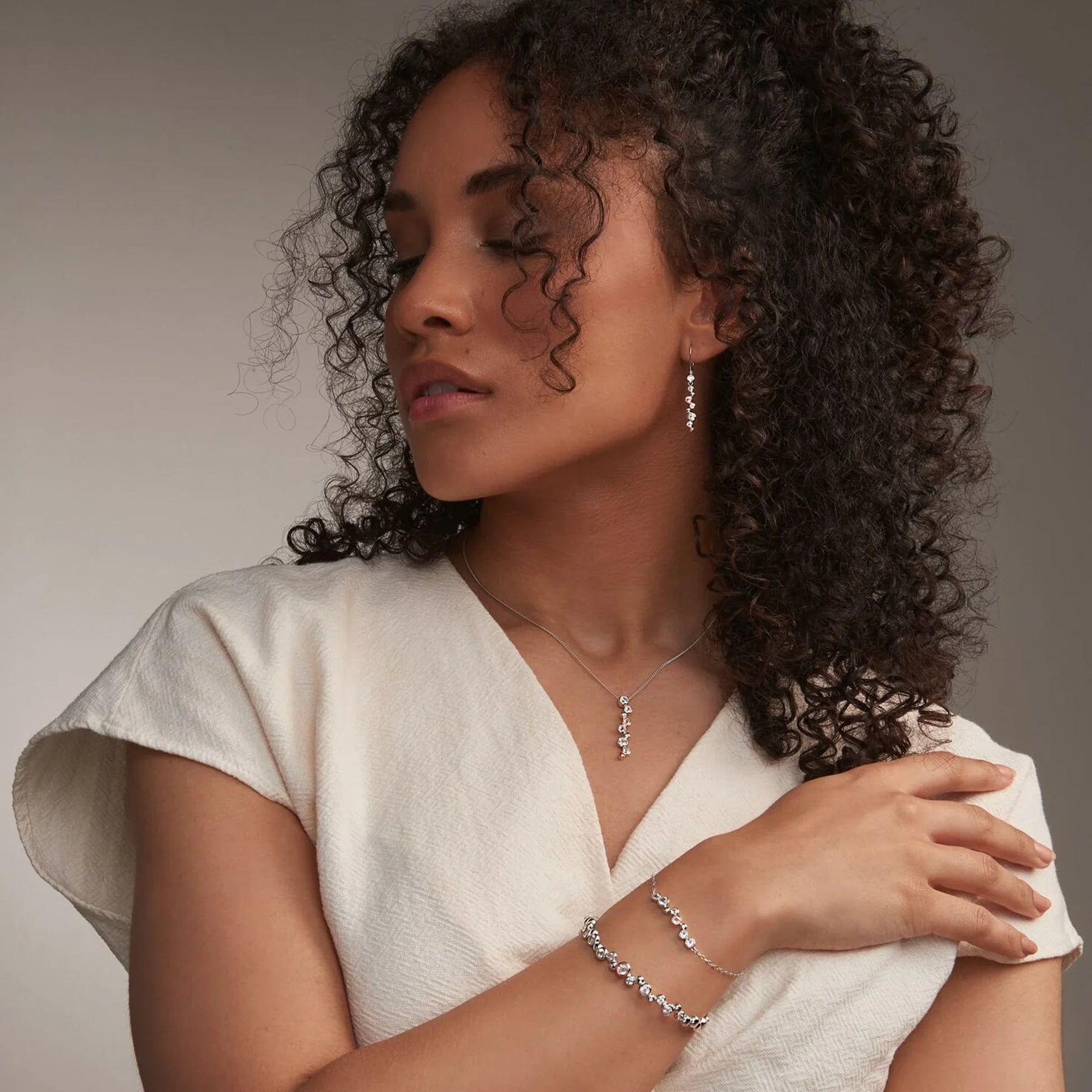 This exquisite piece features dazzling white topaz gemstones on a sleek sterling silver bangle, adding a touch of elegance to any outfit and celebrating life’s moments.