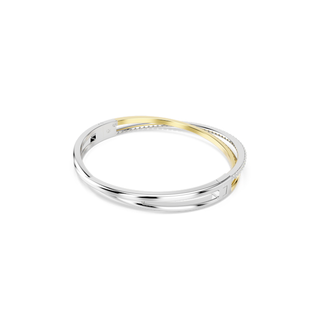 Swarovski Hyperbola bangle featuring white round crystals, mixed metal finish. Open design, luxury jewelry.