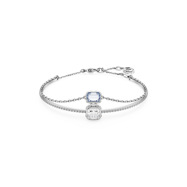 Swarovski Stilla Blue White Cuts Bangle Rhodium Plated by Swarovski, delivering a luxurious finish and radiant sparkle for formal occasions.