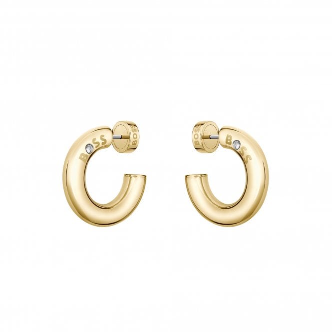 The BOSS Live hoop earrings are a refined women’s design crafted from stainless steel and finished in smooth yellow gold-tone plating. Defined by a continuous, uninterrupted hoop form, they deliver a balanced, modern profile that feels deliberate and precise rather than decorative.