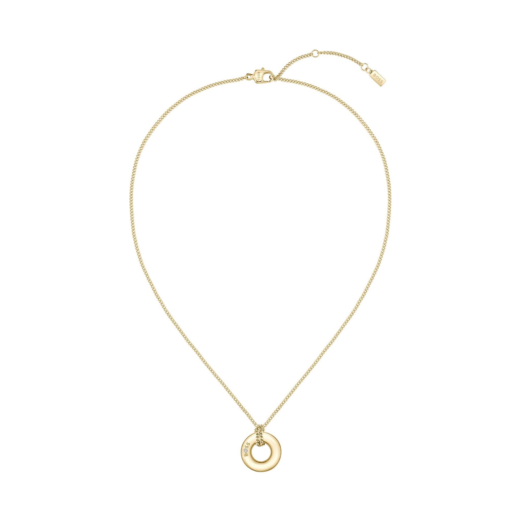 BOSS Rounded Circle Pendant Gold Plated Stainless Steel by BOSS Live radiates sophistication and luxury, delivering a luxe upgrade for everyday style and special occasions.