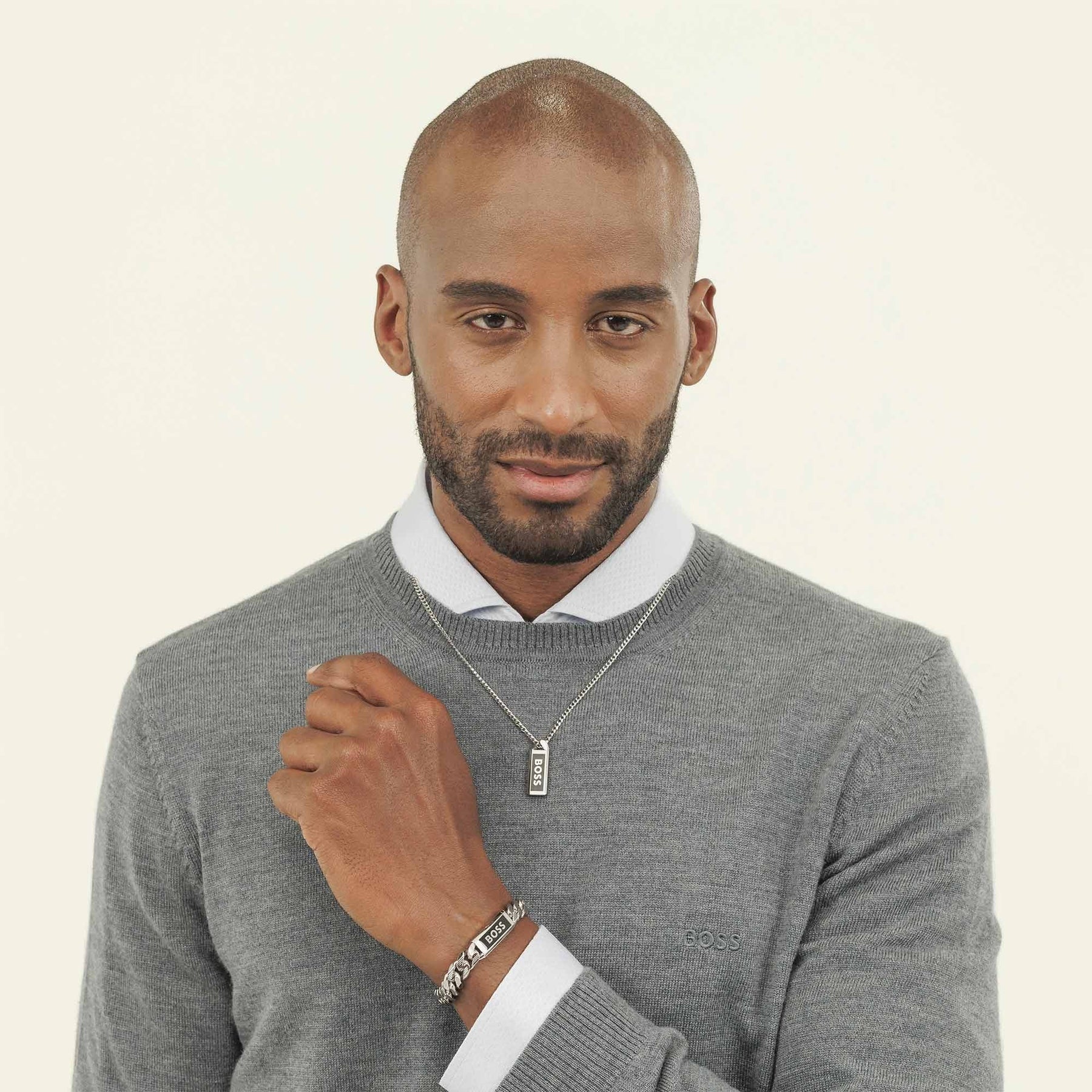 BOSS Mens Kassy Emblem ID Bracelet Stainless Steel