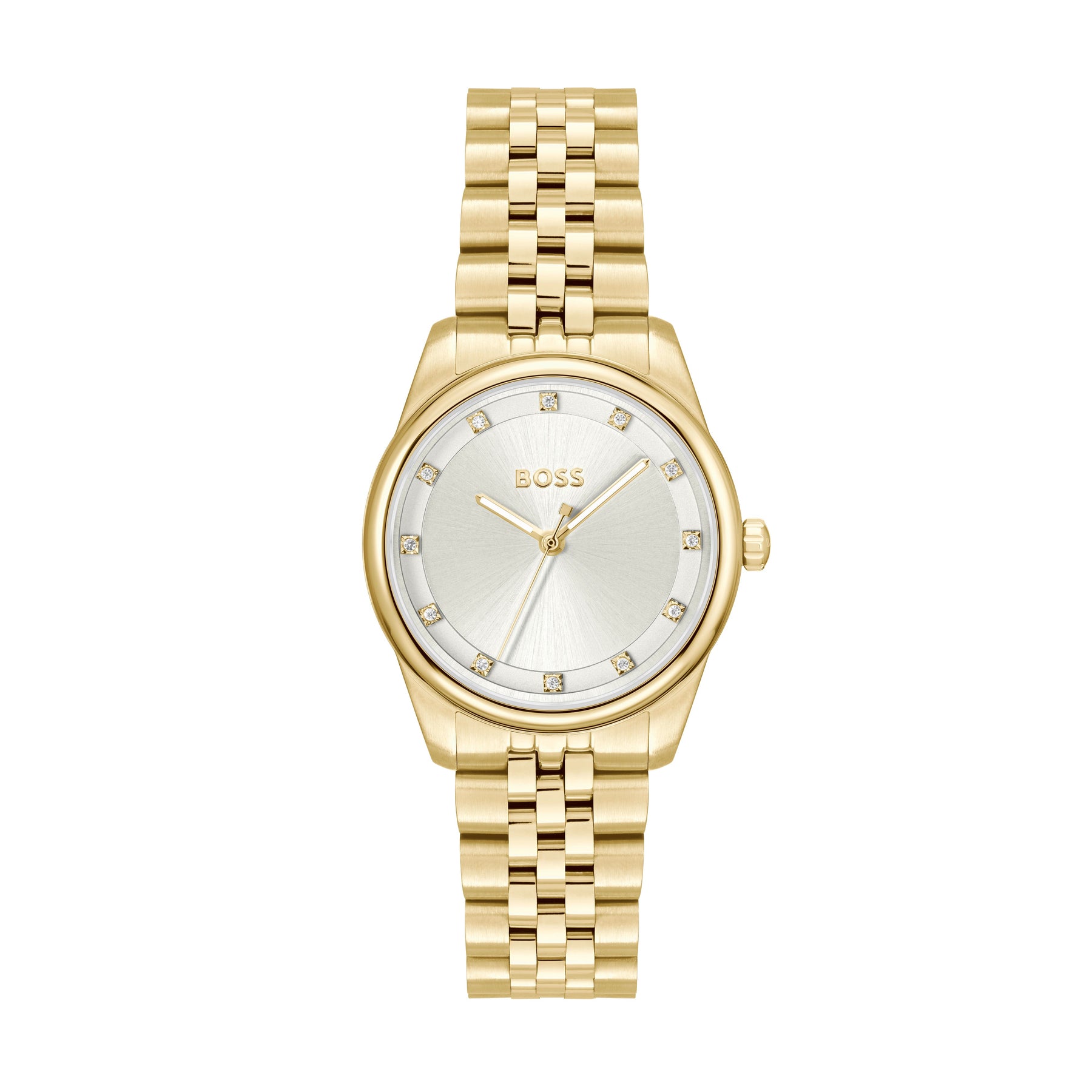 The BOSS Ladies Graceful Precious watch combines timeless elegance with modern design. Featuring a silver dial framed by a refined gold-plated bracelet, this piece offers a luxurious yet understated look. Crafted for those who appreciate sophistication, it seamlessly enhances both everyday and formal attire with its polished finish and graceful silhouette.