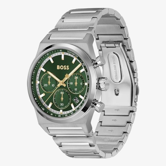 BOSS Mens Candor Chronograph Green Dial Bracelet Watch Stainless Steel