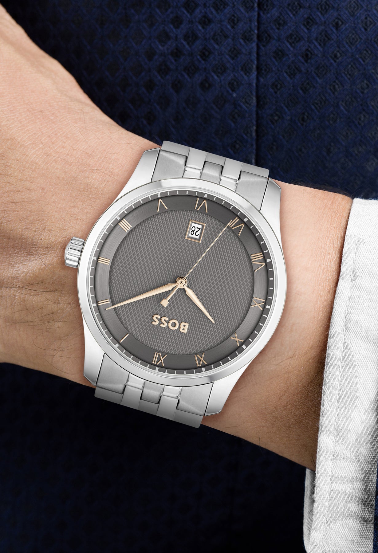 BOSS Principle Grey Roman Bracelet Stainless Steel Watch by BOSS delivers timeless sophistication and durable performance for formal wear and everyday refinement.