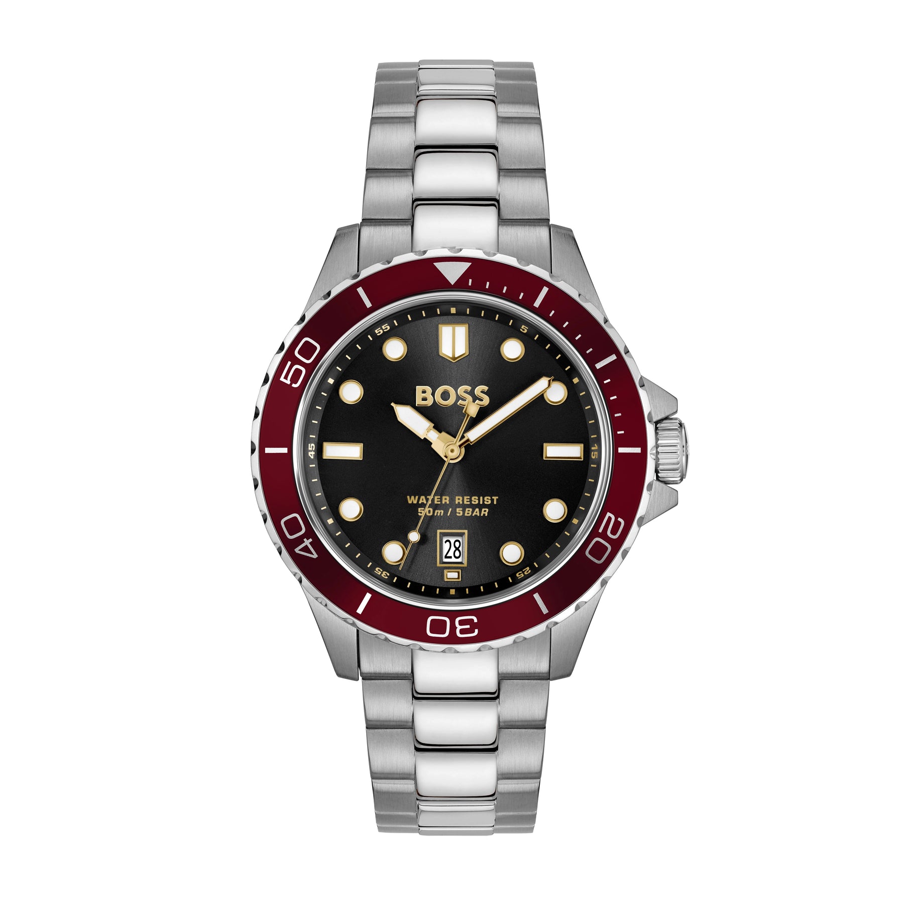 BOSS Mens Troper Sport, Black Dial, Cherry Bezel, Bracelet Watch 1514304