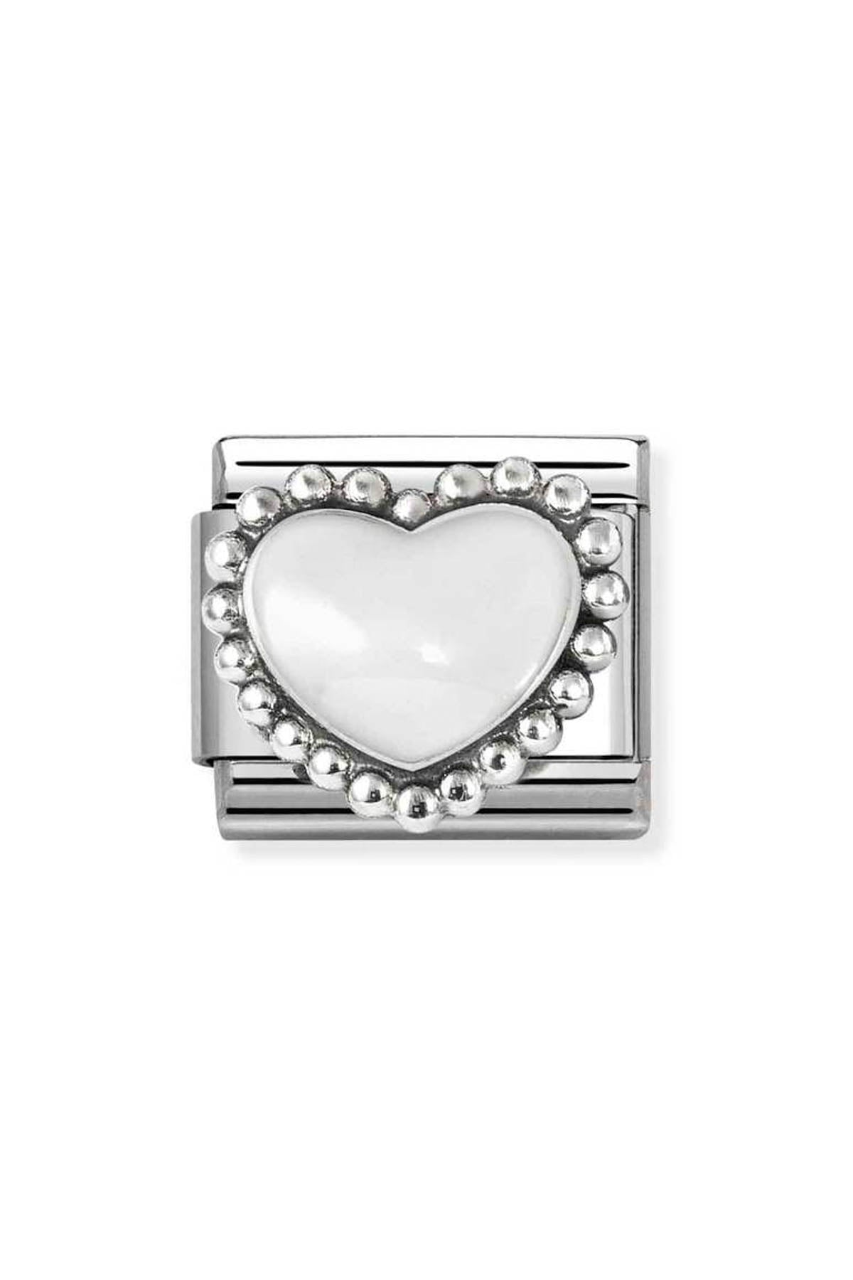 Nomination Composable Classic White Enamel Raised Heart In Stainless Steel and Silver