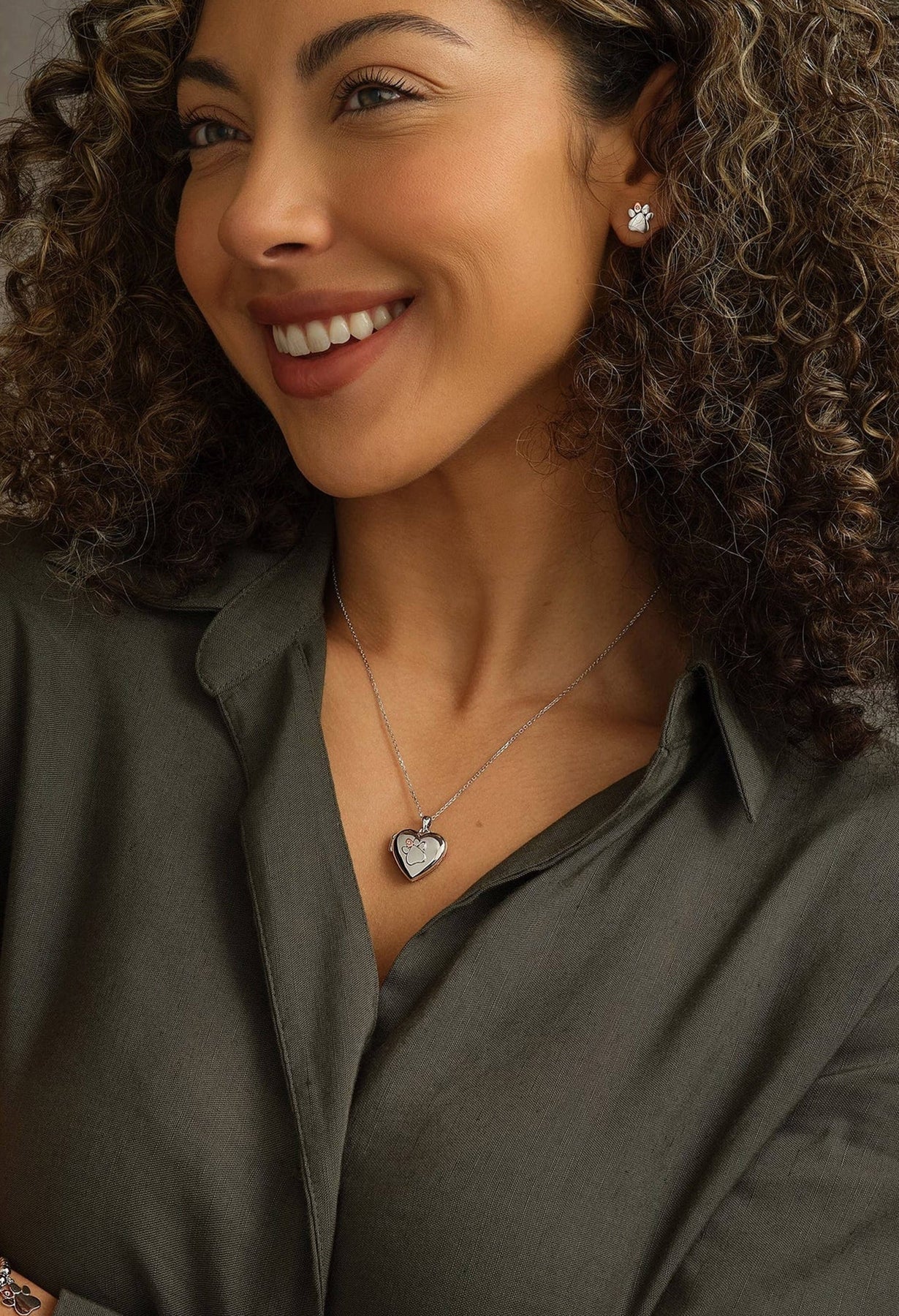 - Paw Print Heart design in sterling silver adds a unique detail to the classic locket silhouette.
