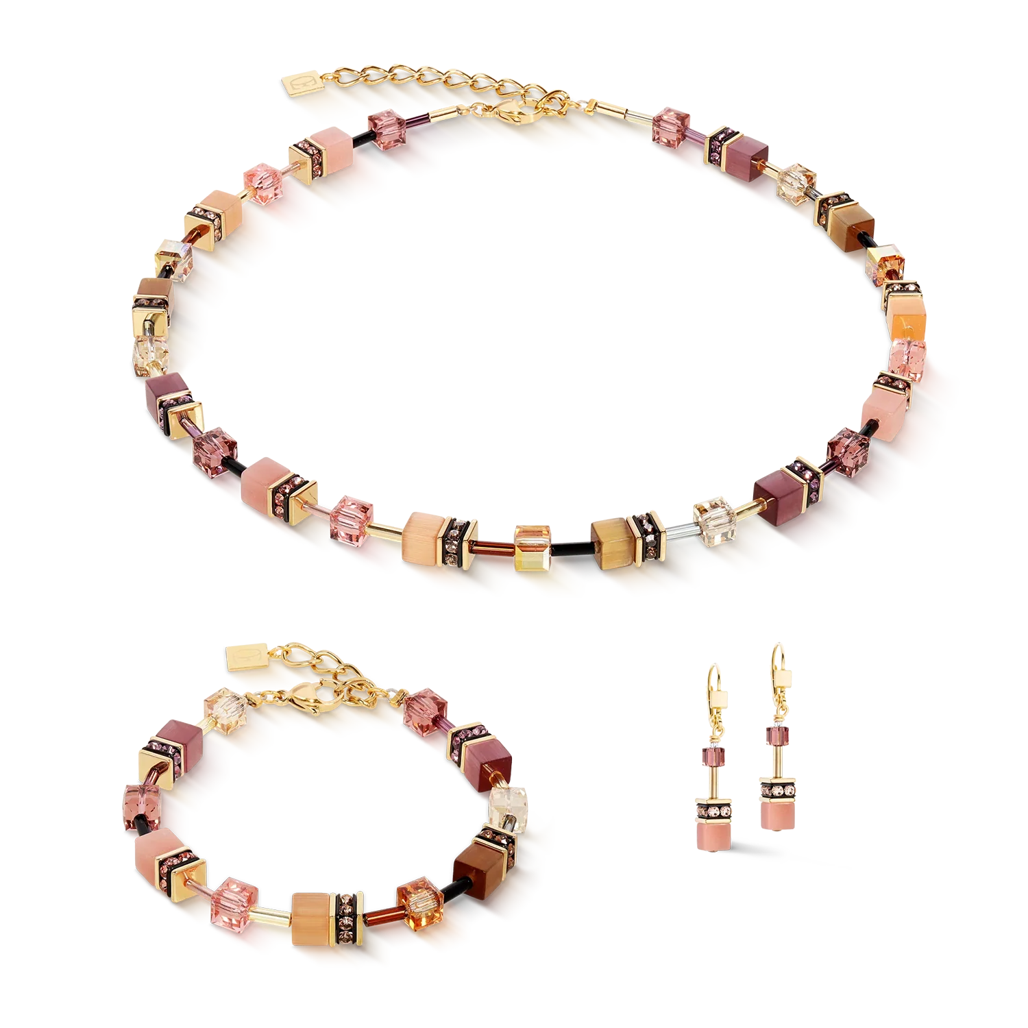 Coeur De Lion Gold Plated GeoCUBE® Brown-Apricot Bracelet 2838/30-1132