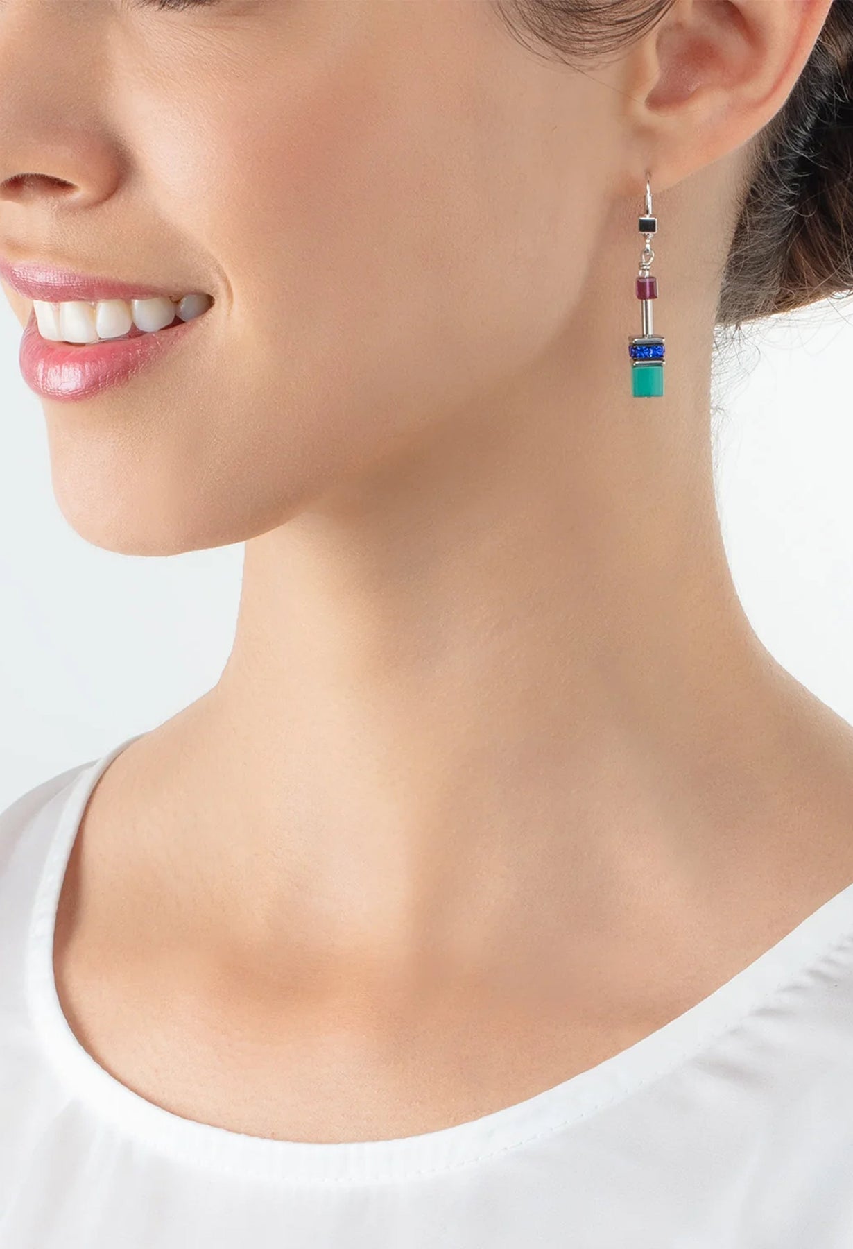 Coeur De Lion GeoCube Turquoise-Purple Earrings Stainless Steel