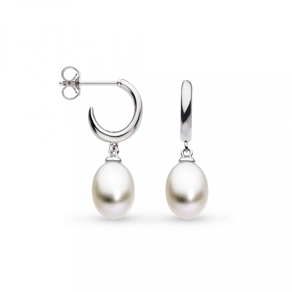 Kit Heath Coast Pebble Pearl Drop Semi Hoop Earrings in Silver 50183FP