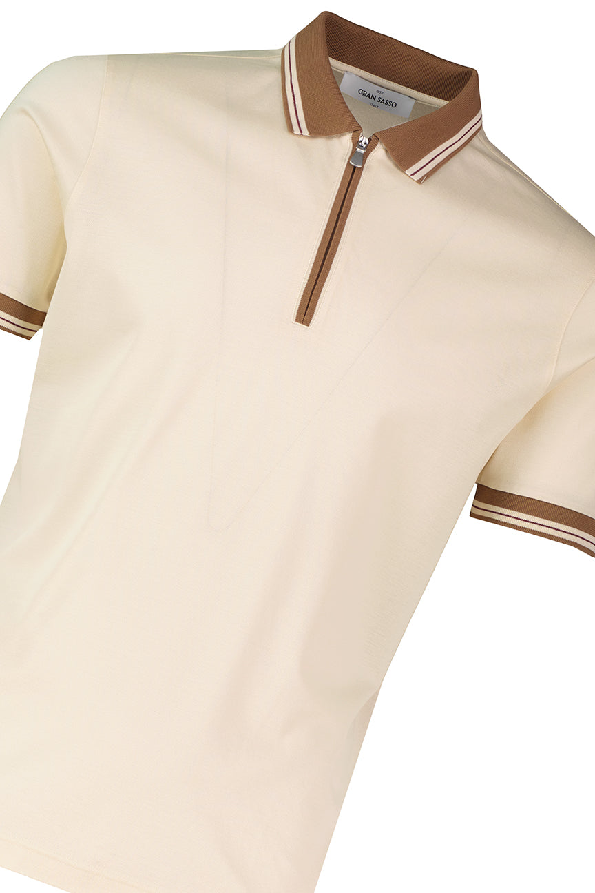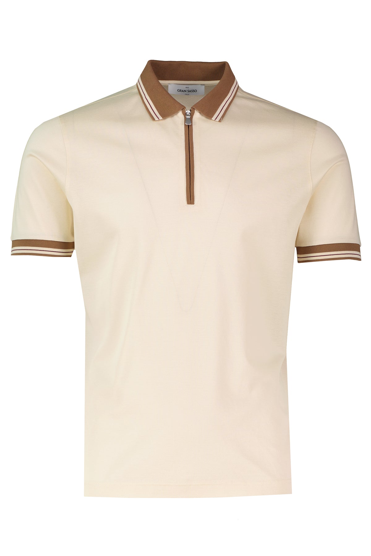 Men's Gran Sasso Beige Mercerised Zip Polo Shirt
