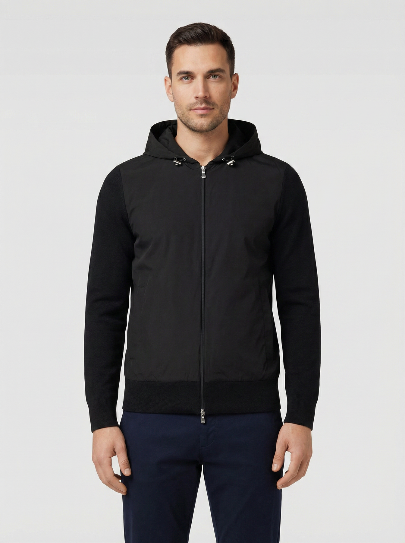 Men's Gran Sasso Black Hoodie Hybrid Jacket - Model Shot