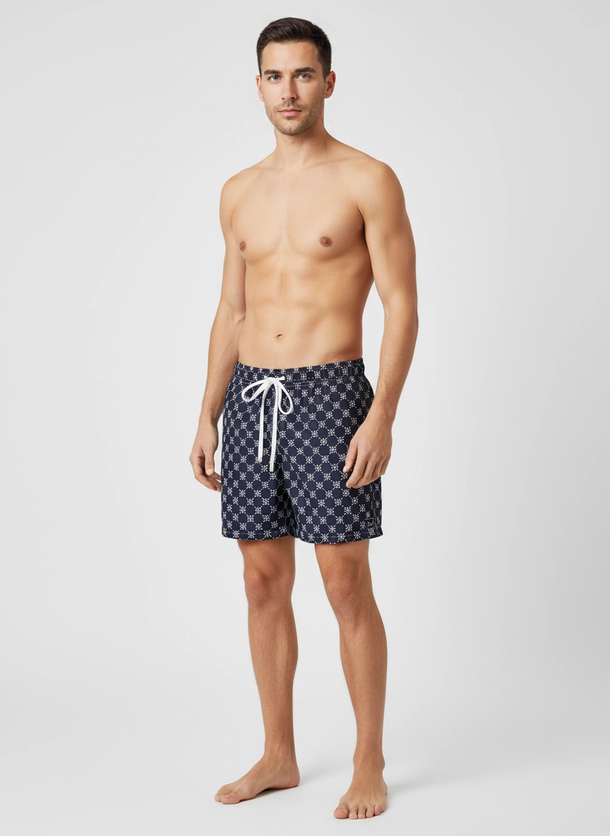 Gran Sasso swim shorts with an all-over GS monogram pattern in recycled polyester.