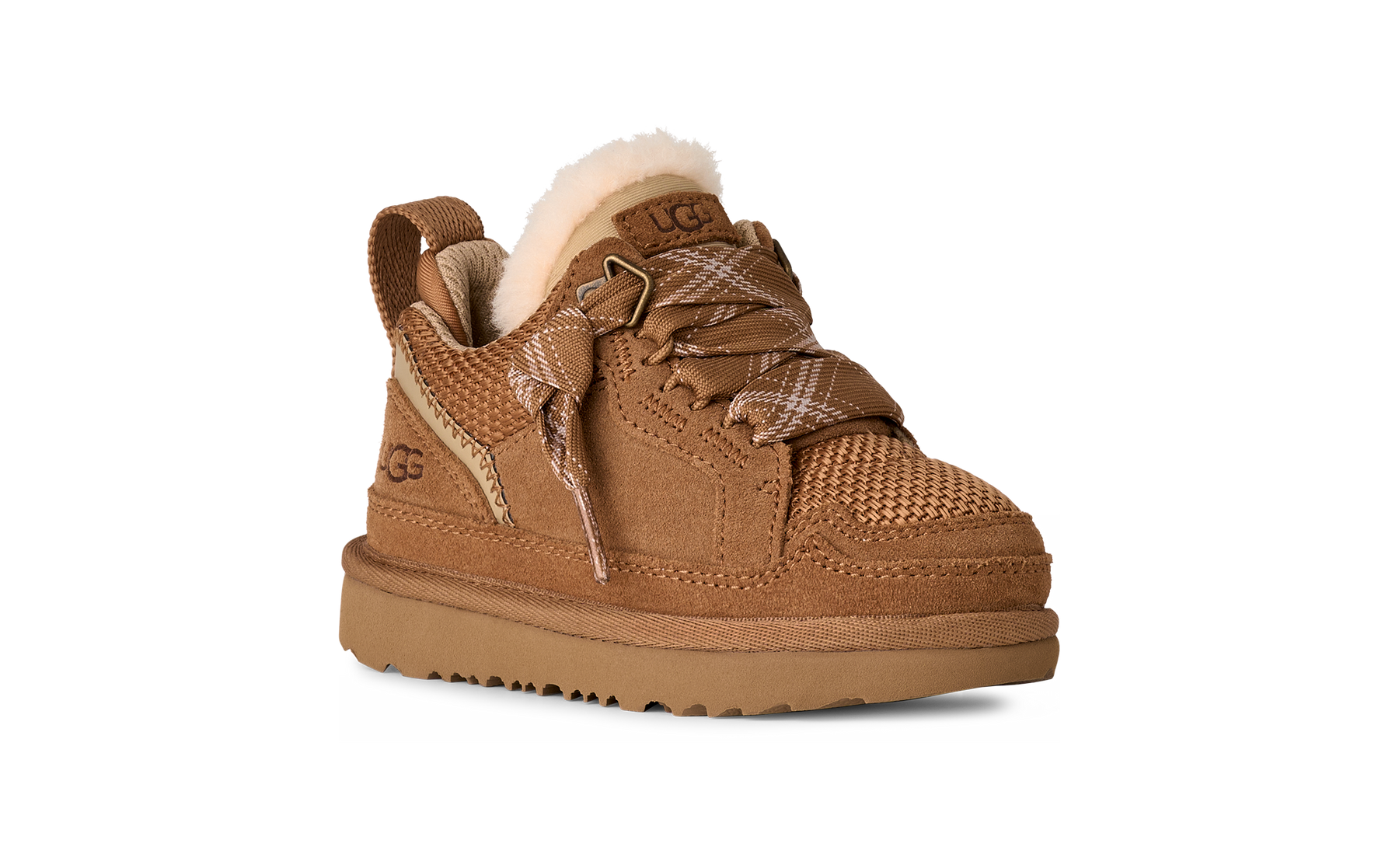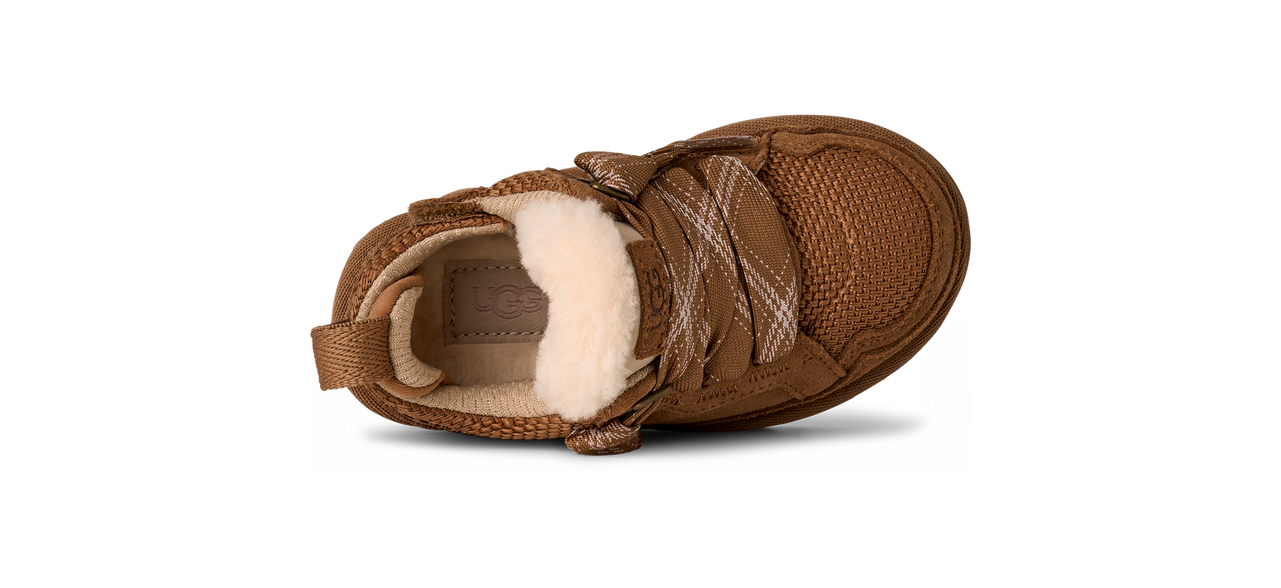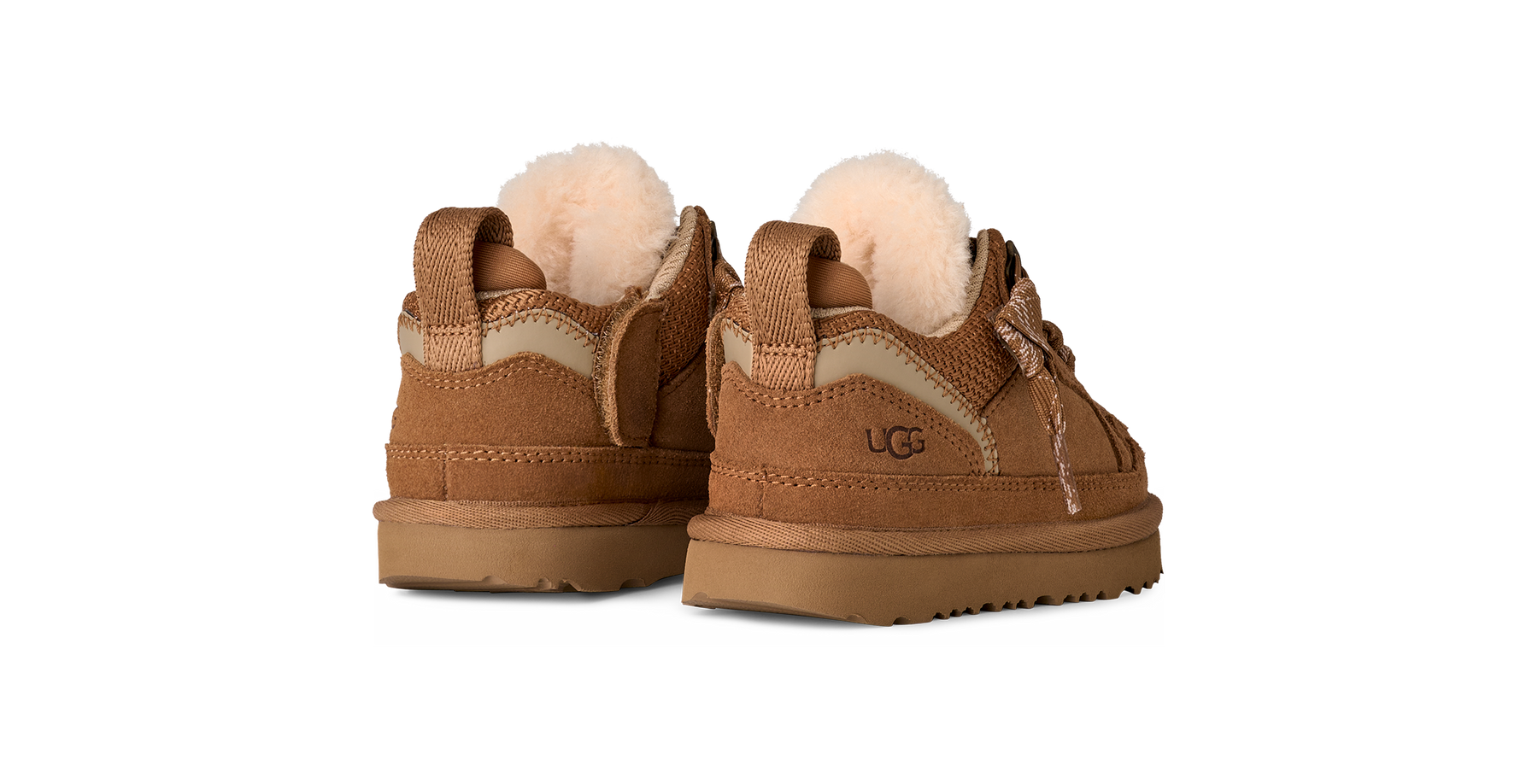 • Branding: Heat-embossed UGG logo; embroidered logo patch at heel