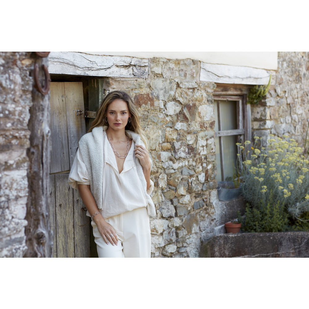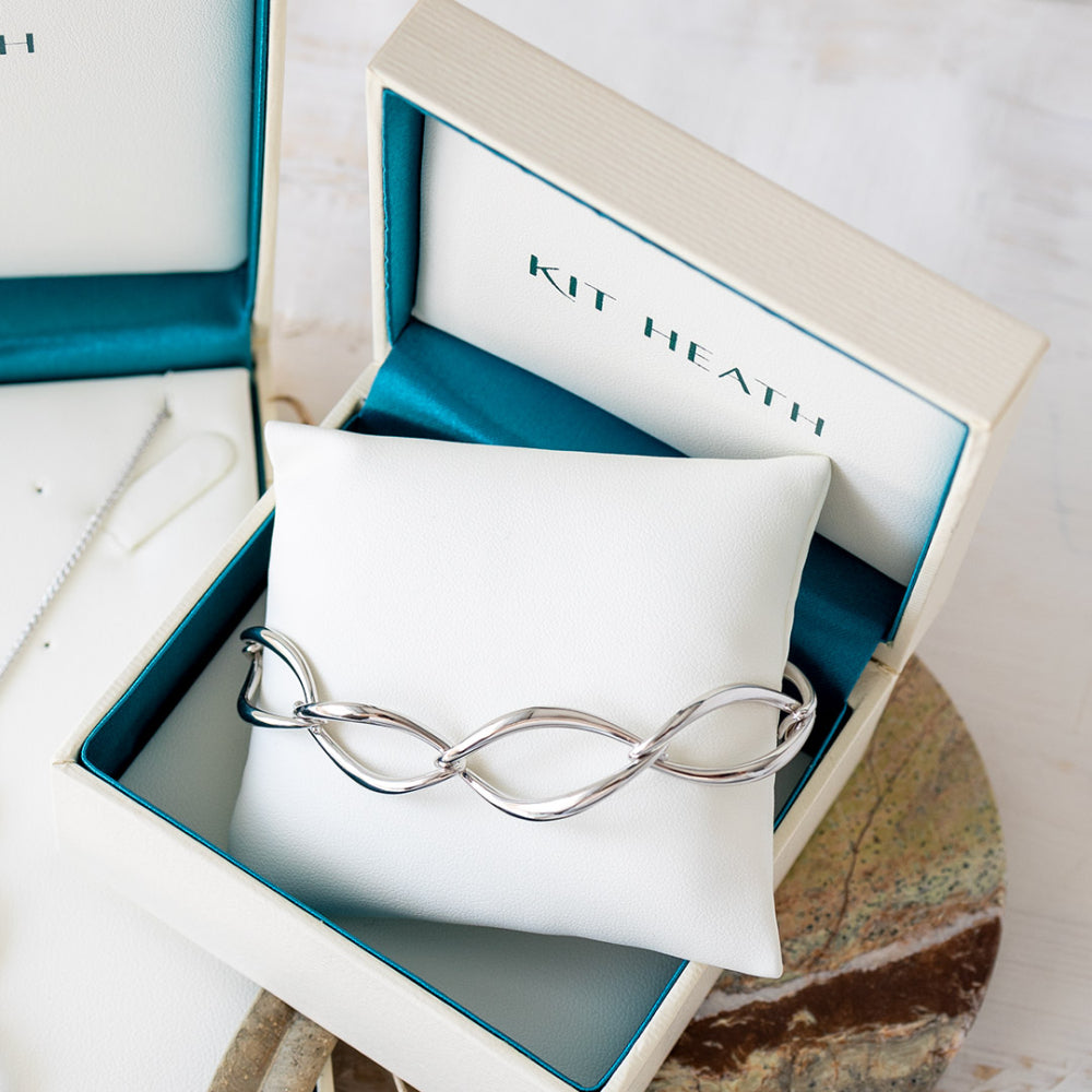 The Kit Heath Entwine Twine Twist Link Bracelet in silver blends intricate design with graceful elegance. Its delicate twisted links create a refined texture that catches the light beautifully, offering a timeless accessory perfect for both everyday wear and special occasions. This bracelet adds a subtle yet sophisticated touch to any ensemble.