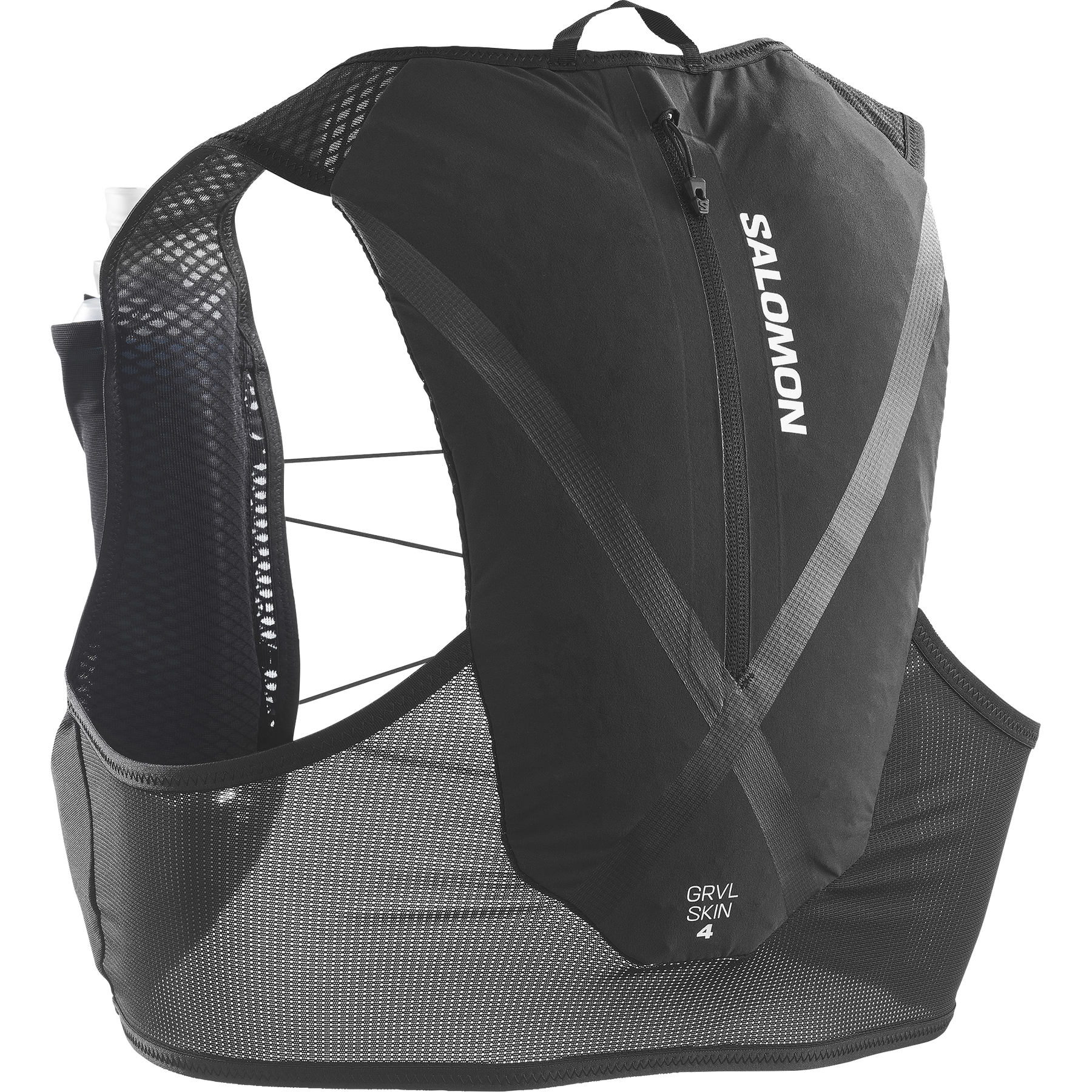 Salomon GRVL Skin 4 Hydration Vest (LC2854600) in Black with 4-litre capacity and included hydration flasks.
