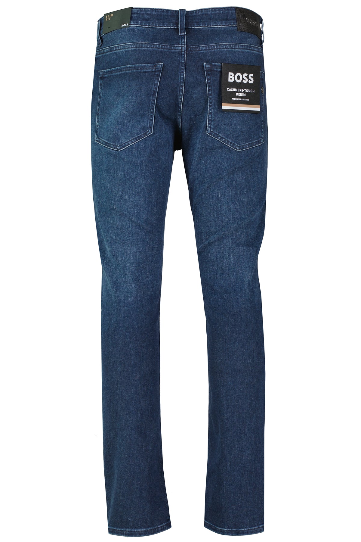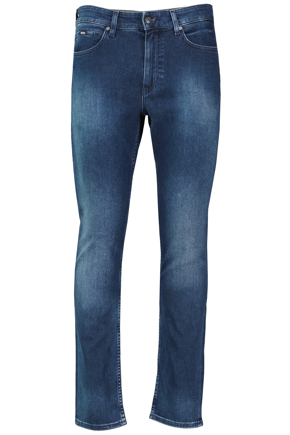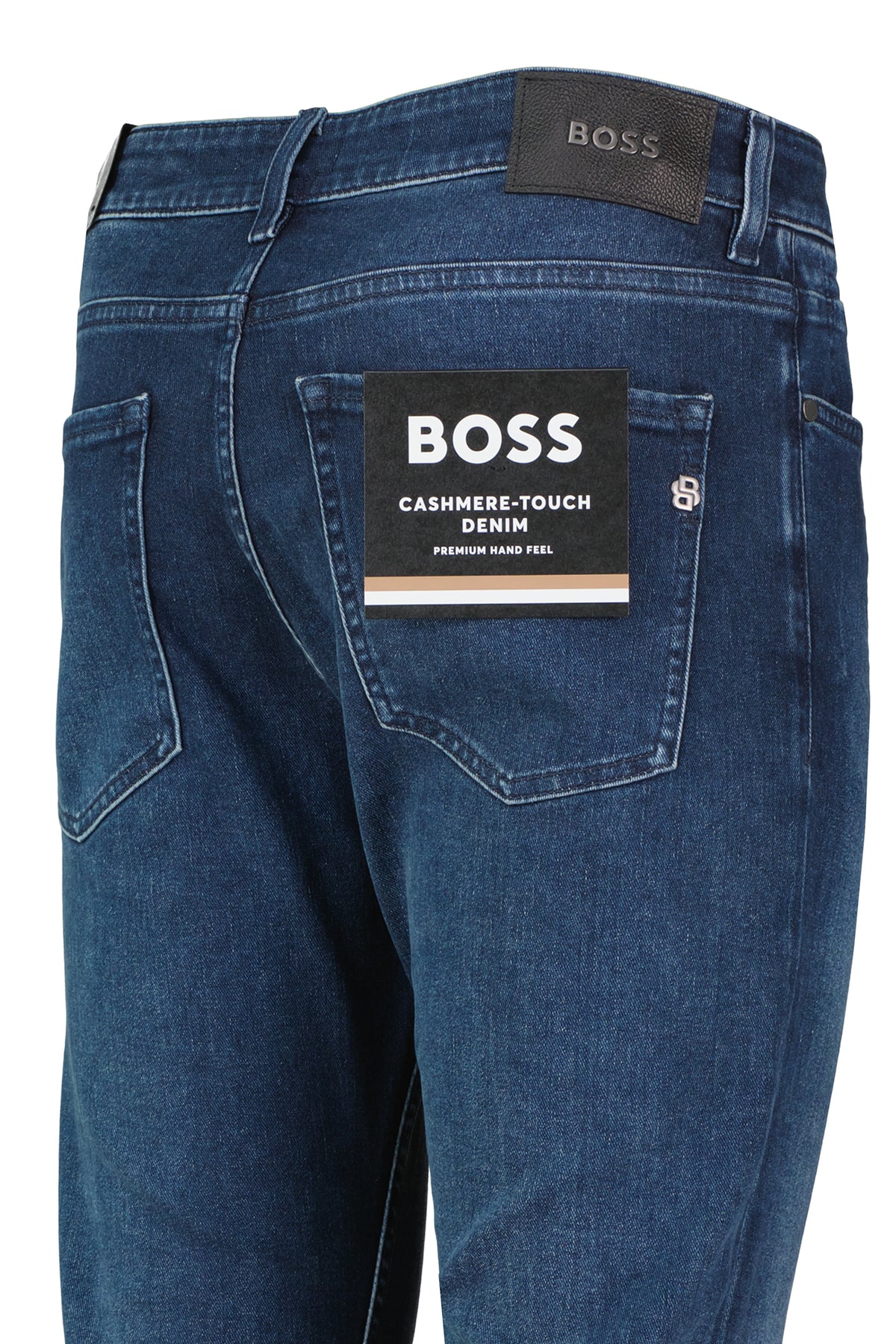 BOSS Slim-Fit Stretch Denim Jeans 50557490-NVY in navy, constructed from 94% cotton stretch denim with super-soft hand feel for stretch comfort.