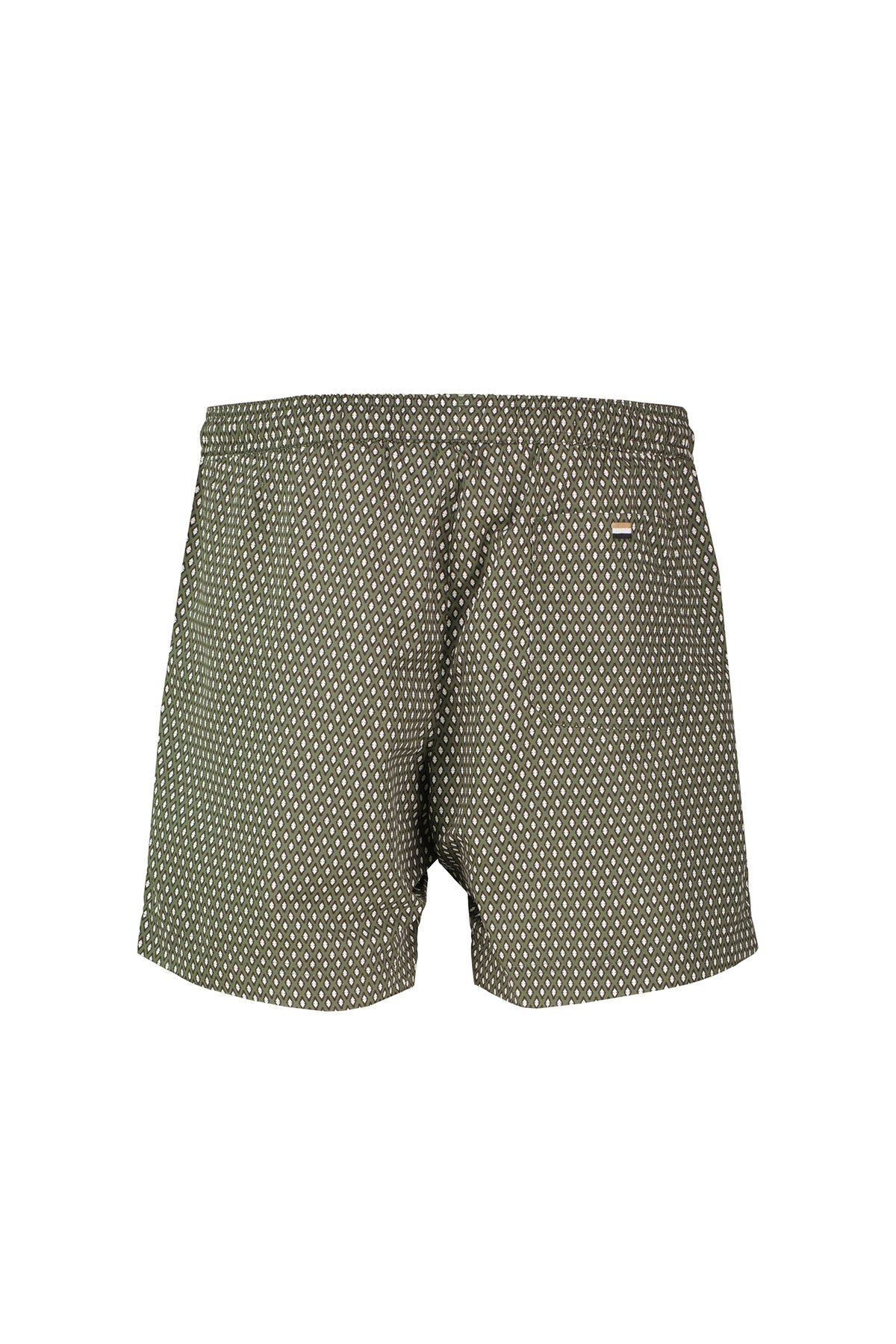 BOSS Micro-Print Quick-Dry Swim Shorts 50518968-OGRN in open green, constructed from 100% polyester with all-over micro-print and quick-dry finish.