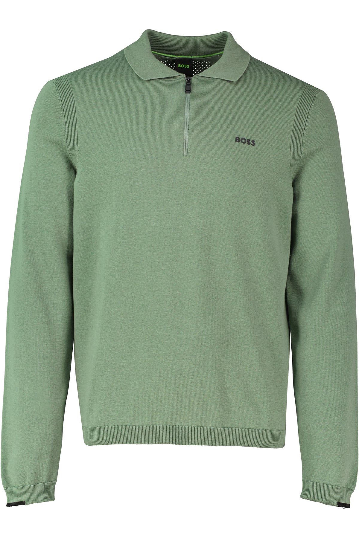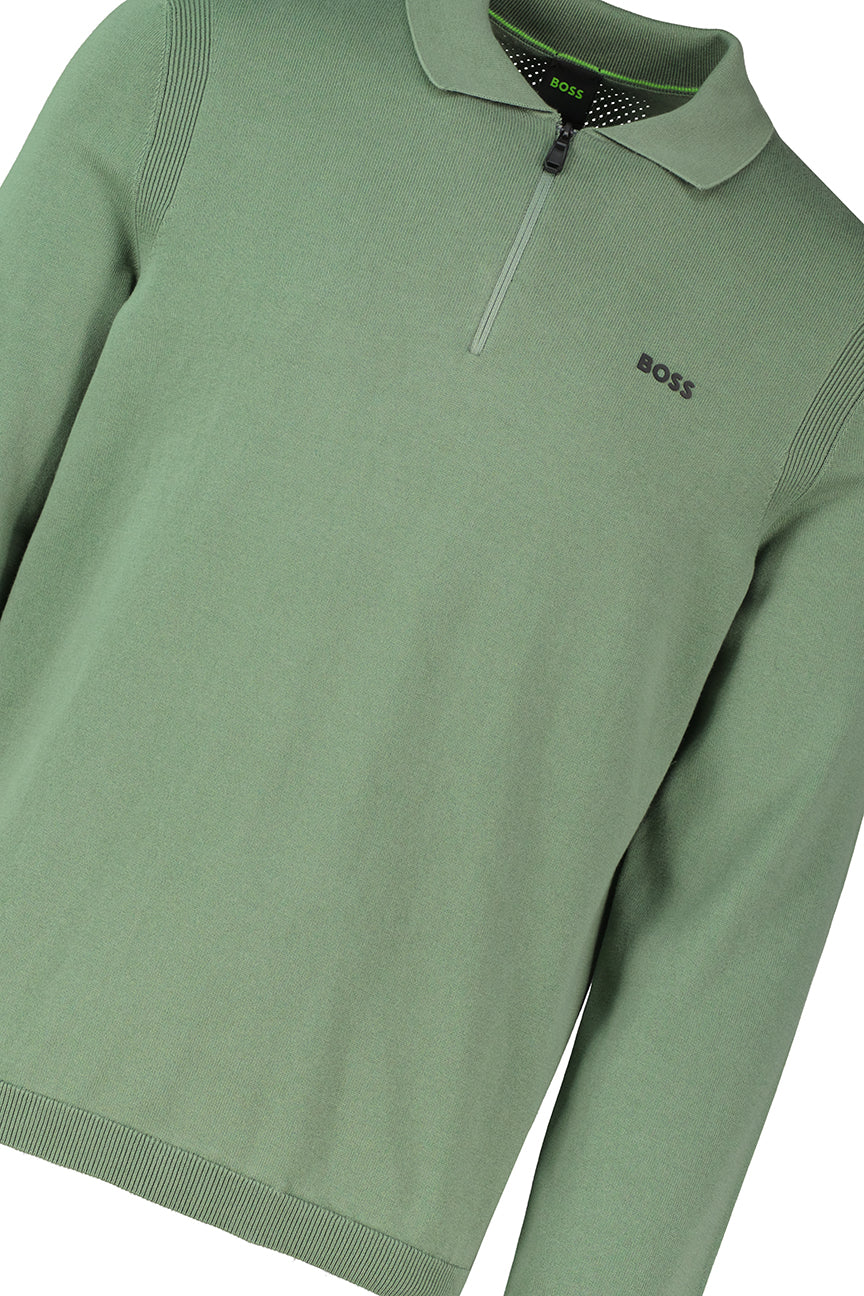 Mens BOSS Green KN_Ever-X PL Open Green 1/4 Zip Knitted Polo Shirt