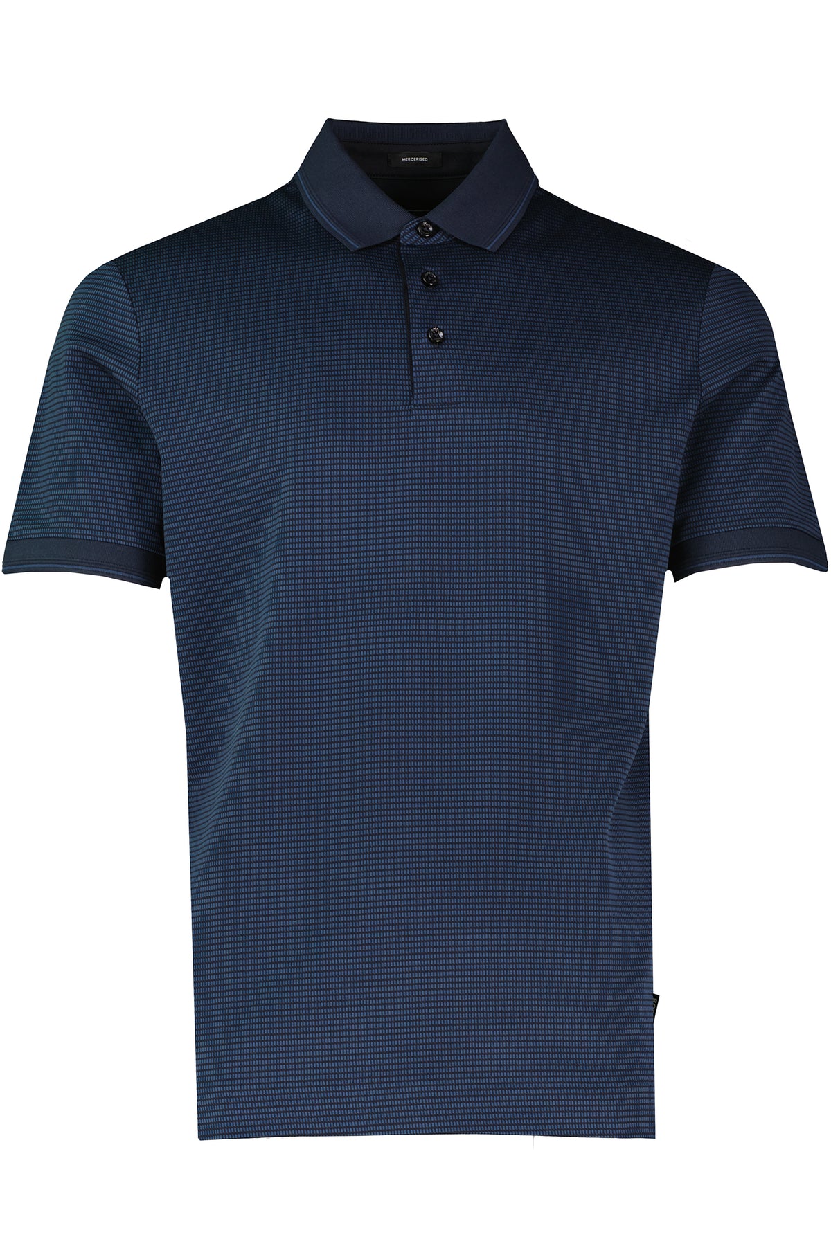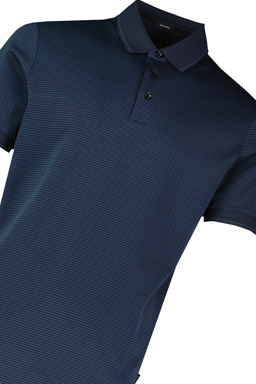 BOSS Mercerised Jacquard Cotton Polo Shirt 50559766-DBLU in dark blue, constructed from 100% mercerised cotton with three-tone jacquard knit.