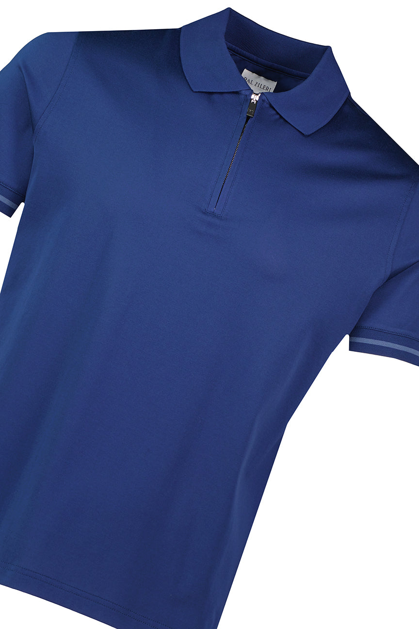 Men's Pal Zileri Blue Mercerised 1/4 Zip Polo Shirt