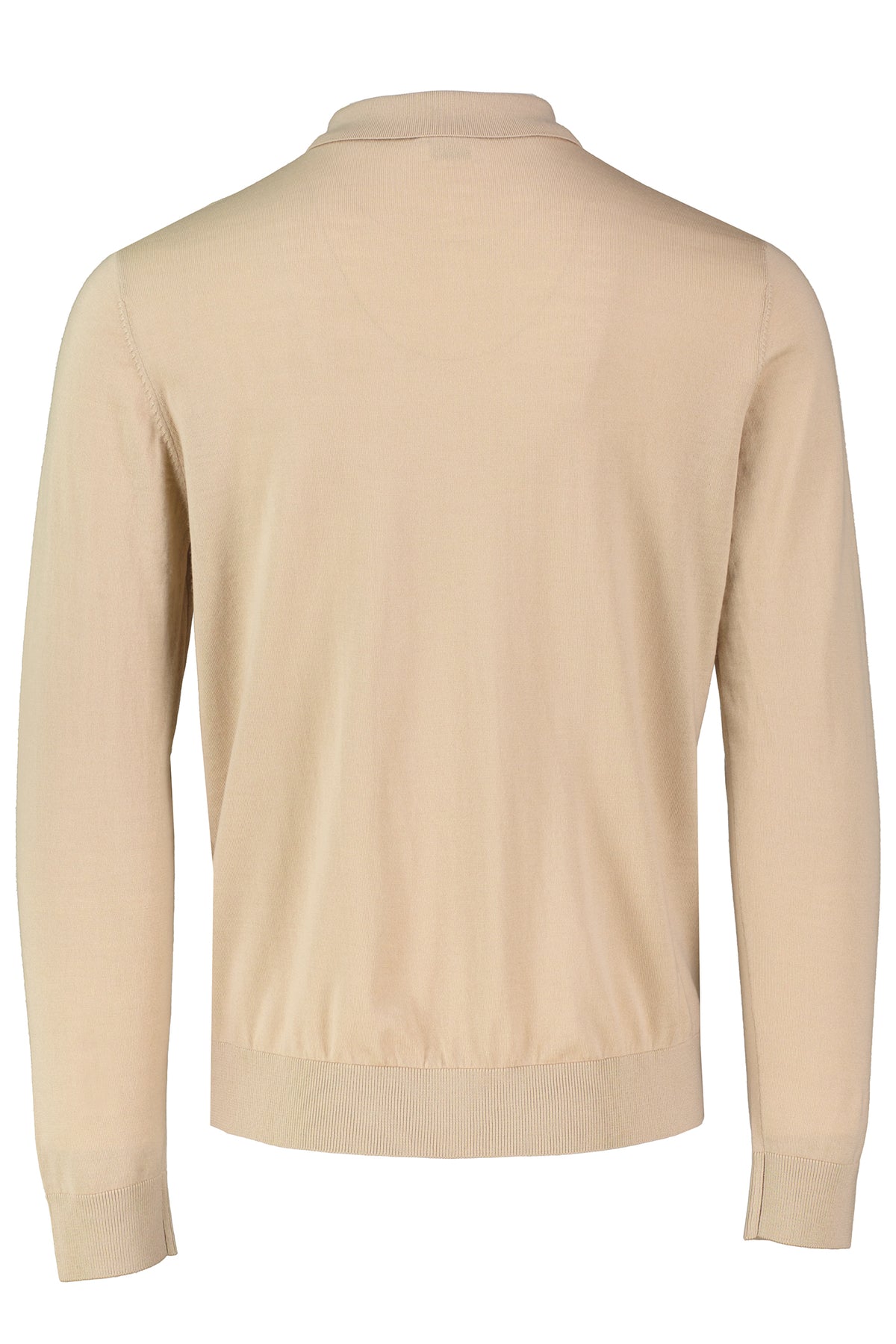 Refined and versatile, the Pal Zileri light brown long sleeve knitted polo shirt is crafted from 100% virgin wool with a fine 16-gauge jersey knit. The tailored fit offers freedom of movement, while the elasticated hem and cuffs create a streamlined silhouette. Naturally soft and durable, this polo blends everyday comfort with sophisticated style. Perfect for business casual looks or relaxed weekend wear, the light brown shade ensures timeless versatility.