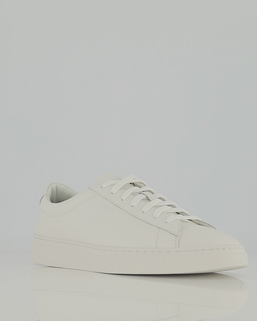 Men's BOSS cupsole trainers constructed from cowhide leather upper with rubber sole. Low-profile design with BOSS branding at backtab.