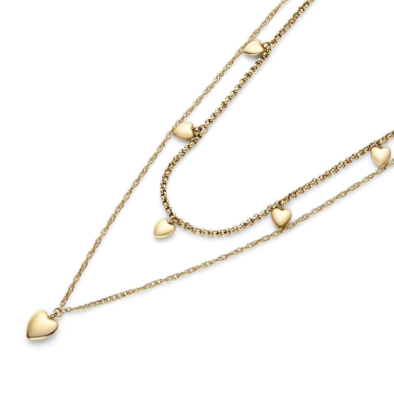 The Olivia Burton Gold Plated Mini Heart Double Chain Layered Necklace combines delicate design with timeless sophistication. Featuring two fine gold-plated chains layered to create subtle depth, this necklace highlights a charming mini heart pendant that adds an elegant, understated accent. Perfectly crafted to enhance any ensemble, it offers a refined accessory choice for both everyday wear and special occasions.