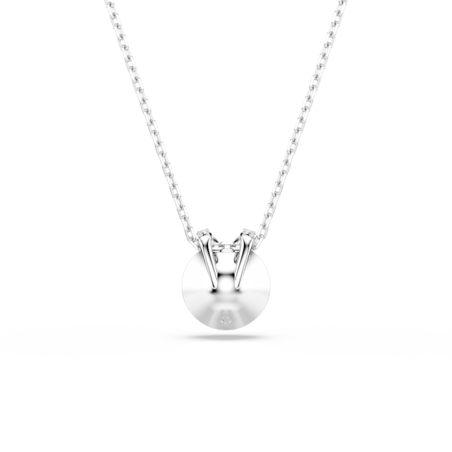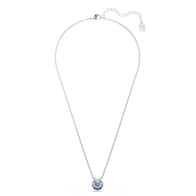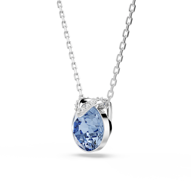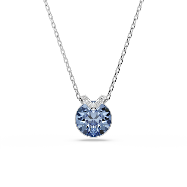 Swarovski Bella V Pendant Blue Round Cut Rhodium Plated by Swarovski elevates your elegance with a brilliant blue crystal, perfect for adding sophistication to evening wear and special occasions.
