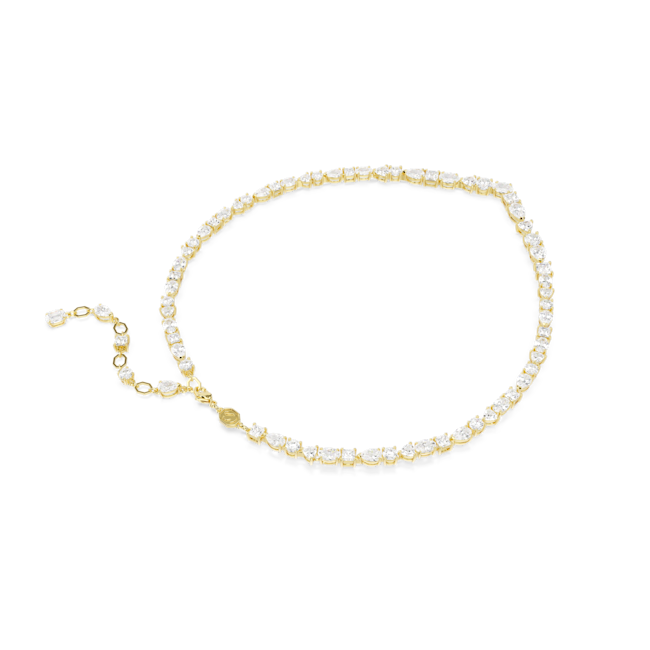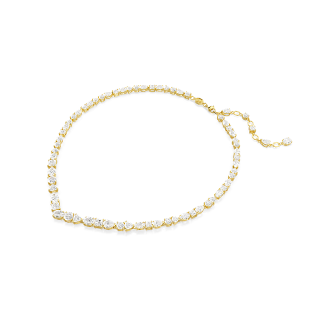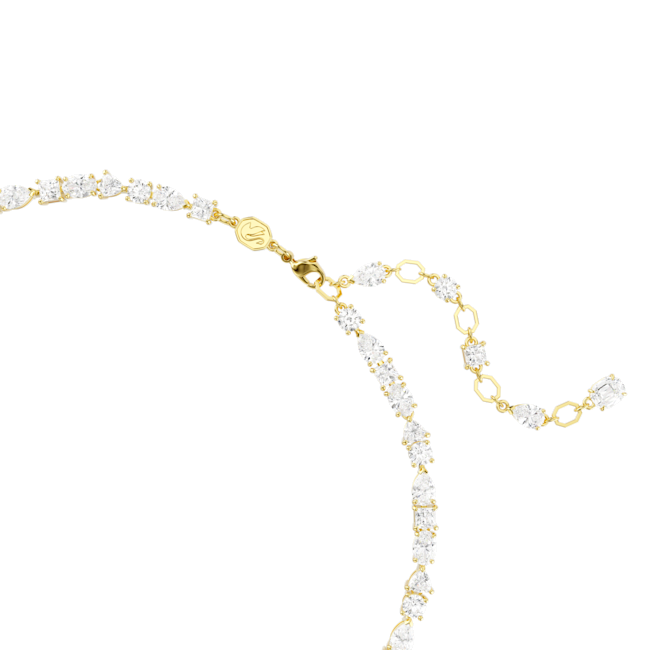 The Swarovski Gold Plated Mesmera Mixed Cuts Necklace combines exquisite craftsmanship with sophisticated design. Featuring an array of intricately cut crystals set in a warm gold-plated finish, this necklace captures light beautifully to create a radiant shimmer. Perfect for adding a touch of refined glamour to any outfit, it embodies timeless elegance and contemporary style.
