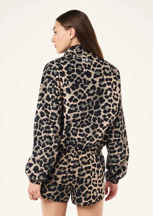 The Shield Jacket in Leopard from P.E Nation is your go-to statement layering piece. Crafted from water-resistant spray fabrication, this slightly cropped jacket offers premium protection and elevated athleisure style.
