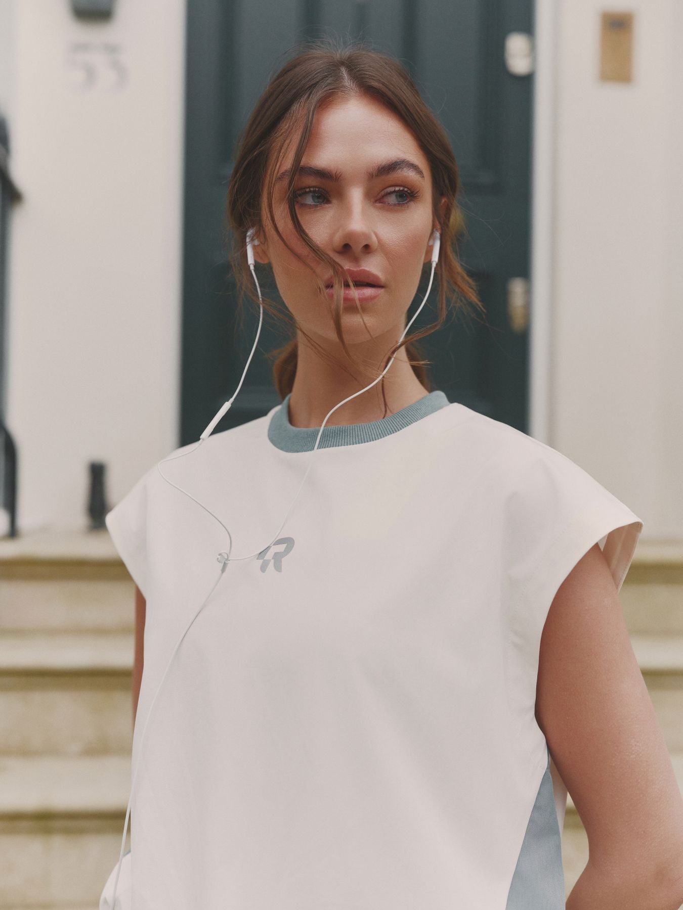 Red Run Skyline Windbreaker Top RR-SL-WBT-CRM in cream, constructed from 100% polyester for lightweight comfort.