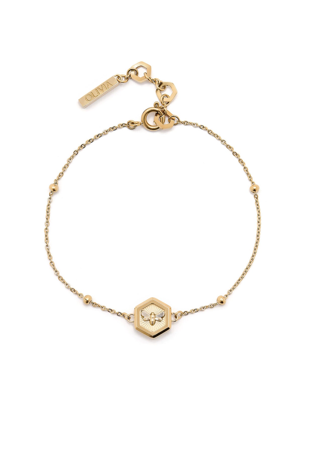 Olivia Burton Minima Bee Bracelet Gold Plated Charm by Olivia Burton, highlighting its luxurious gold-plated shine for everyday glamour and stylish occasions.