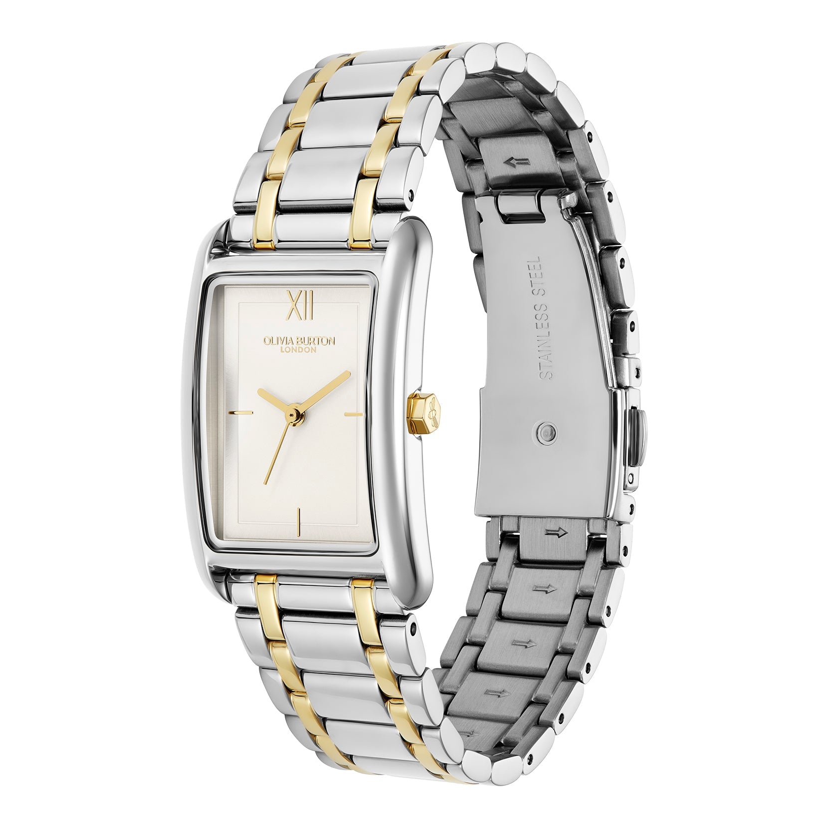Olivia Burton Ladies Classics Grove White Tank Dial Bracelet Watch Stainless Steel & Gold Plated