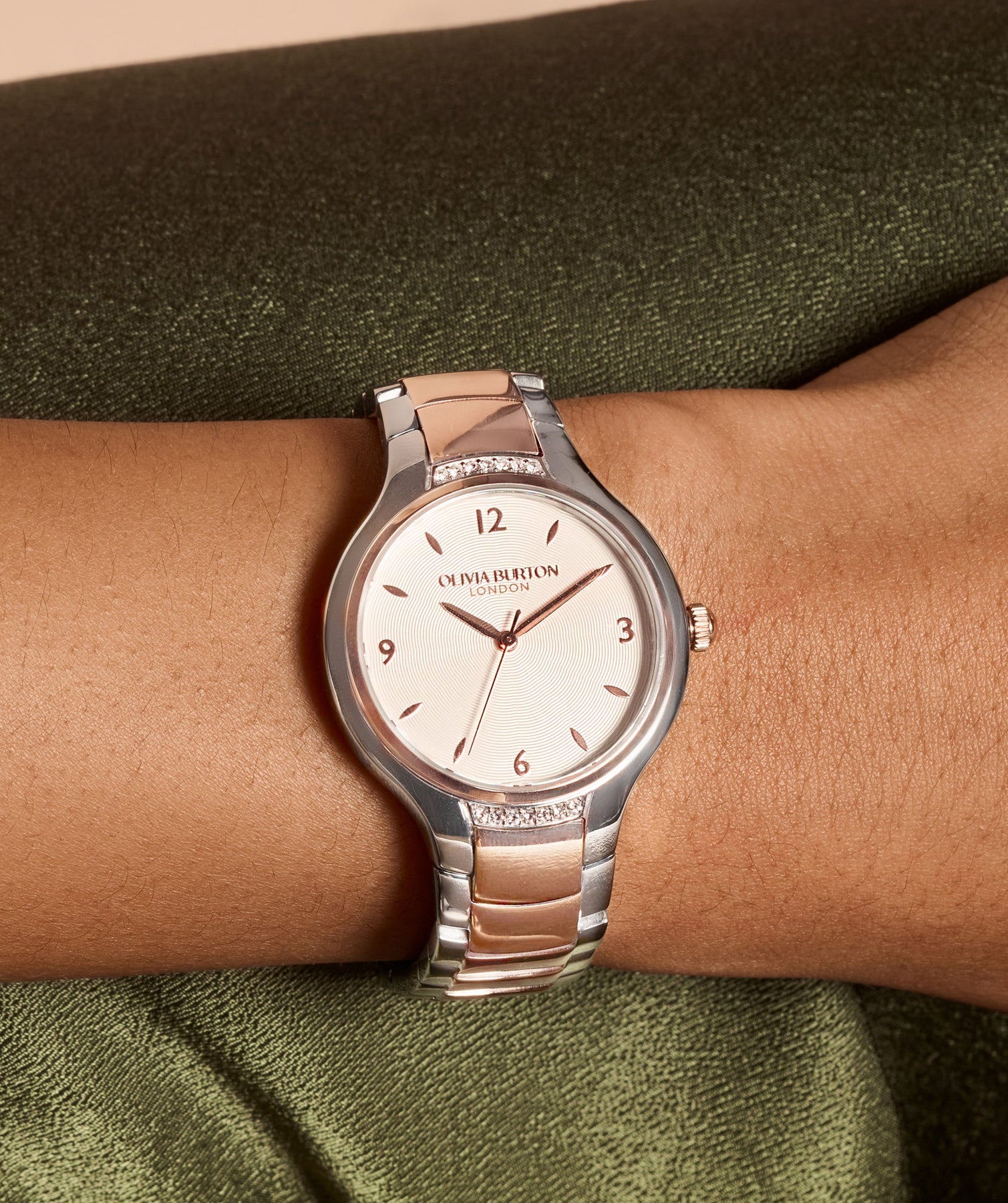 Olivia Burton Ladies Modern Classics Lea Silver Dial Bracelet Watch Stainless Steel & Rose Gold Plated