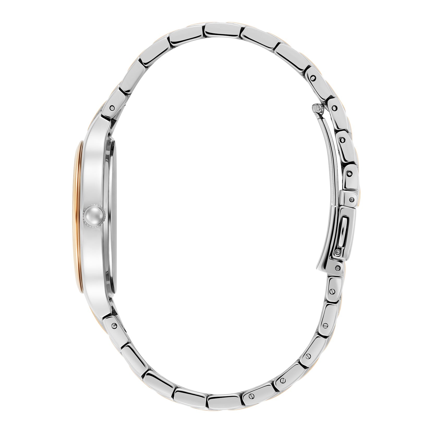 - Elegant silver dial paired with a rose gold-plated bracelet for versatile, day-to-night style.