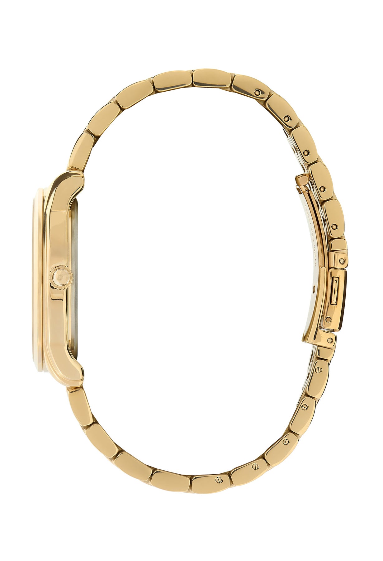 The classic gold-plated bracelet design pairs with a shimmering dial to elevate any outfit from day to night.