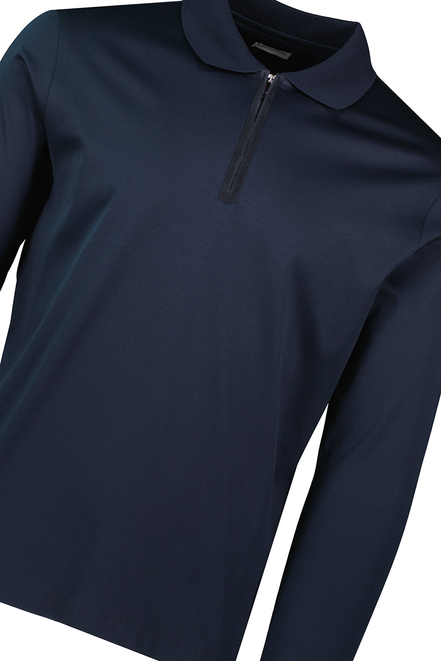Men's Pal Zileri Navy Mercerised 1/4 Zip Long Sleeve Polo Shirt