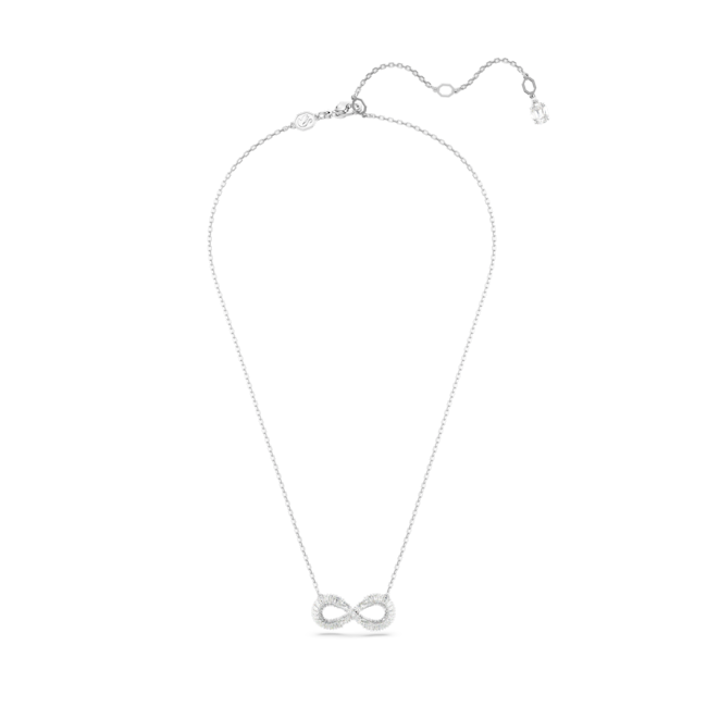 Rhodium-plated Swarovski infinity pendant necklace, conveying elegance and timeless design. Delicate chain, adjustable