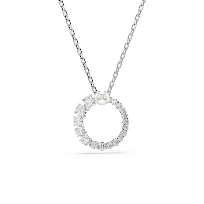 Swarovski Matrix Pendant, Crystal Pearl Circle, Rhodium Plated by Swarovski elevates your style with a touch of sophistication for refined outfits and special occasions.