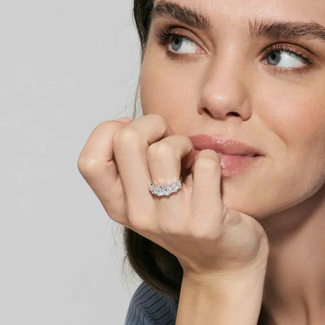 - Features five princess-cut cubic zirconia stones for a striking sparkle.
