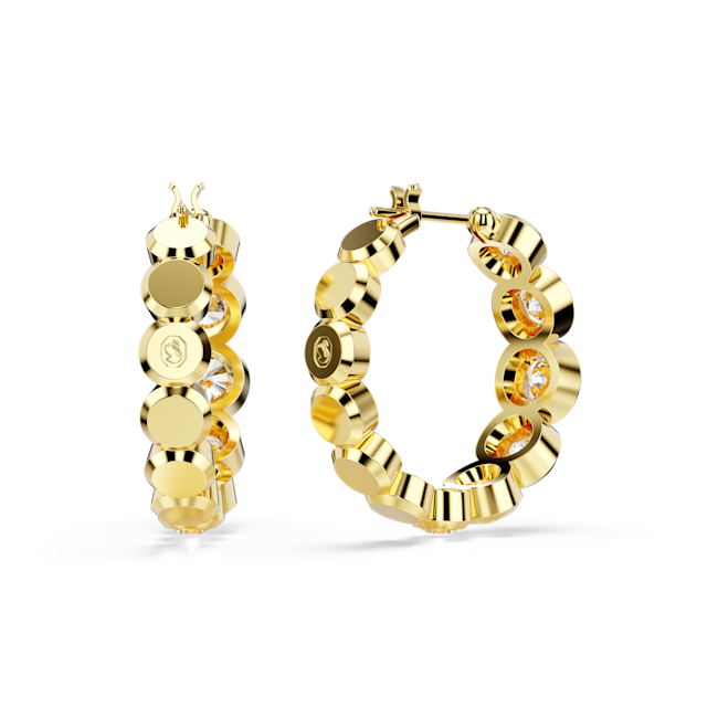 Swarovski Imber Round Cut Bezel Set Hoop Earrings Gold Plated