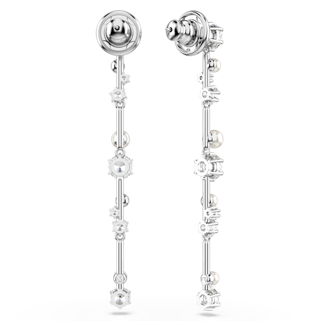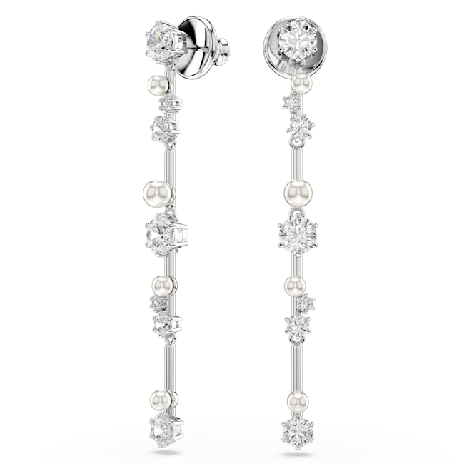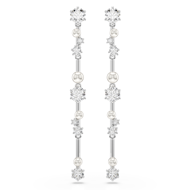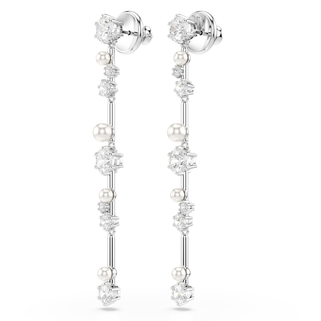 Swarovski Constella Pearl and Round Cut Crystal Drop Earrings Rhodium Plated by Swarovski