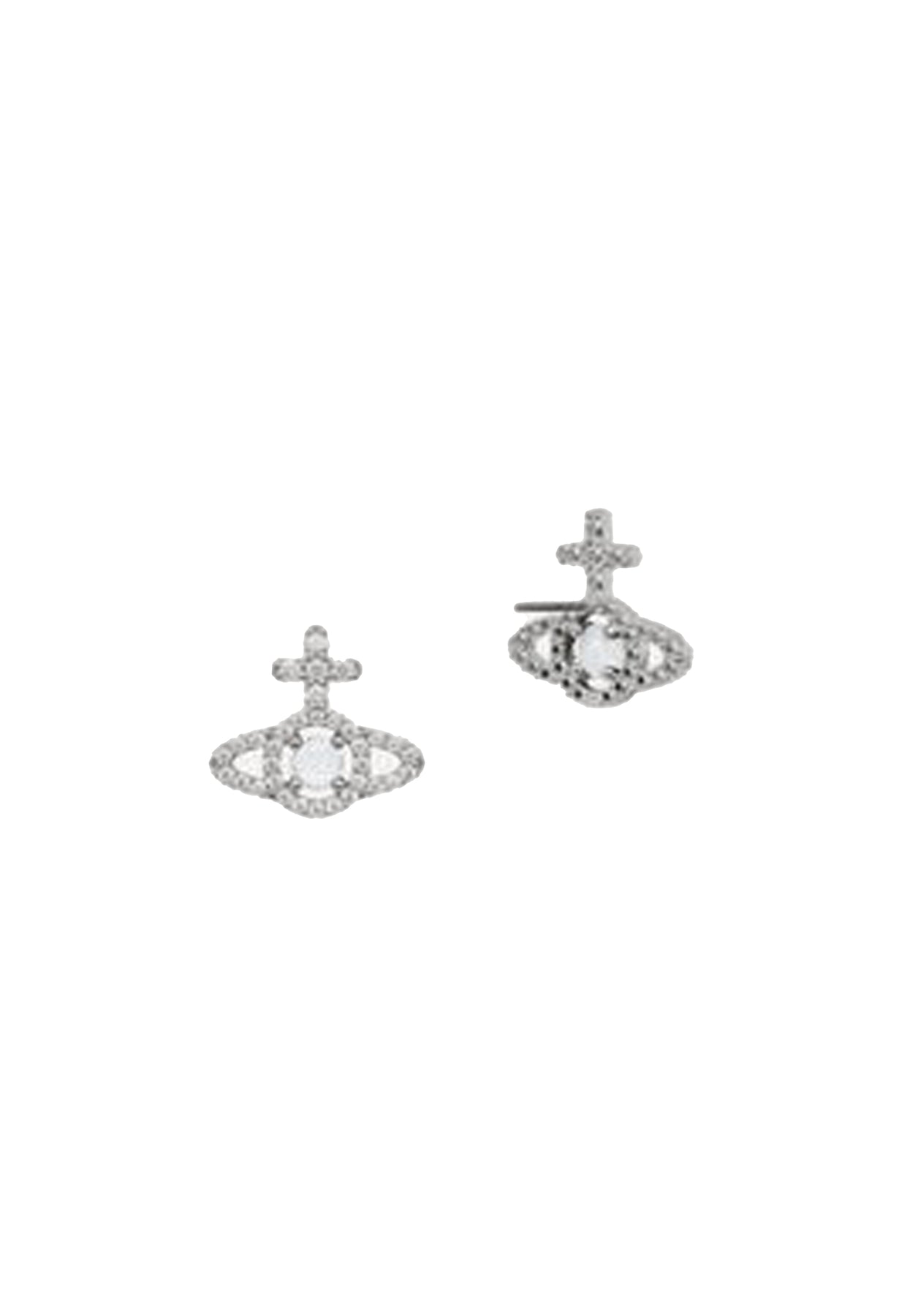 The Olympia CZ Earrings are silver-tone plated stud earrings constructed around Vivienne Westwood’s Olympia Orb motif, set with clear cubic zirconia for crisp, controlled light reflection.