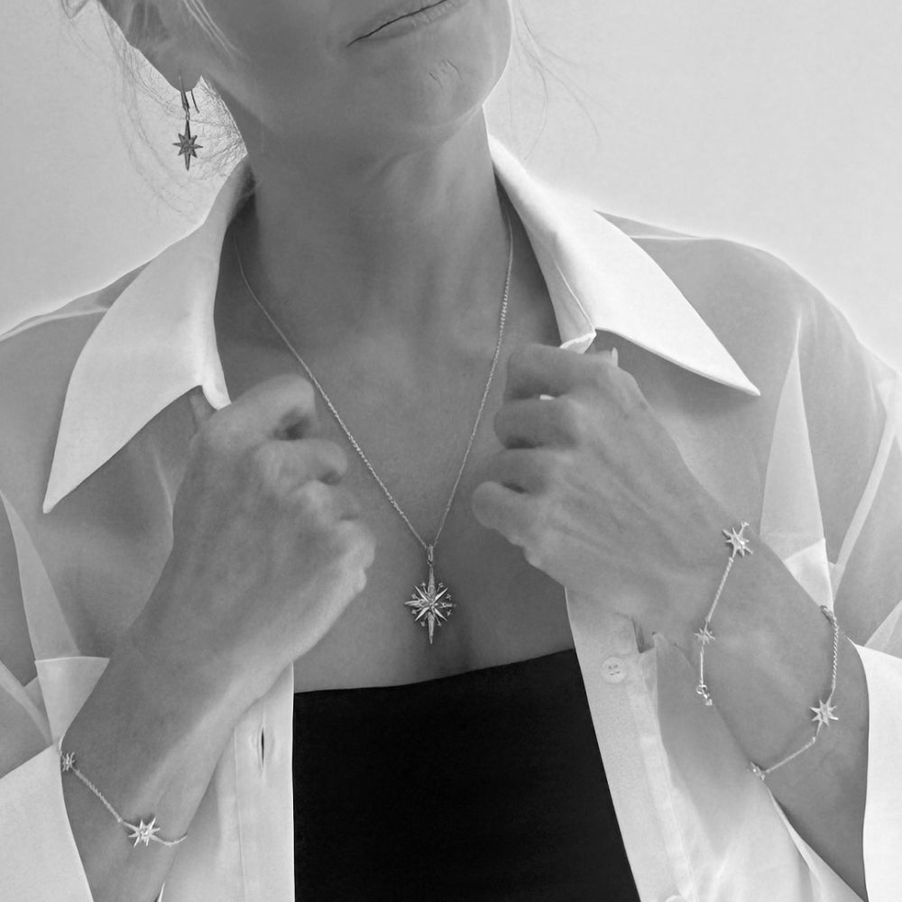 Elevate your elegance with the Kit Heath Silver Celeste North Star CZ Slider Bracelet. Crafted in shimmering silver, its delicate sliding design features a dazzling North Star motif adorned with sparkling cubic zirconia. This adjustable bracelet offers a refined touch of celestial charm, perfect for enhancing any sophisticated ensemble with subtle brilliance.